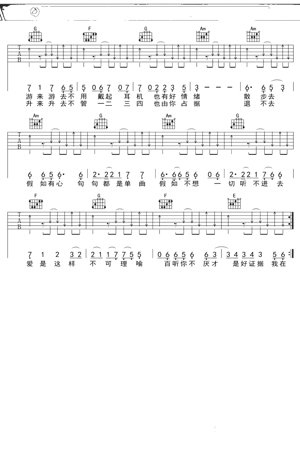 萧亚轩《爱的主打歌》吉他谱 弹唱六线谱