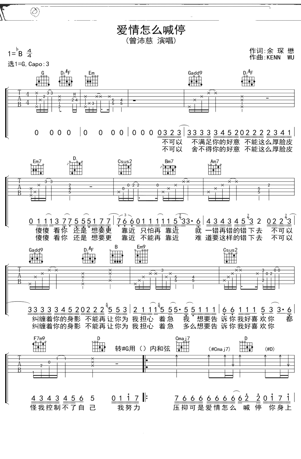 曾佩慈《爱情怎么喊停》吉他谱 弹唱六线谱吉他谱