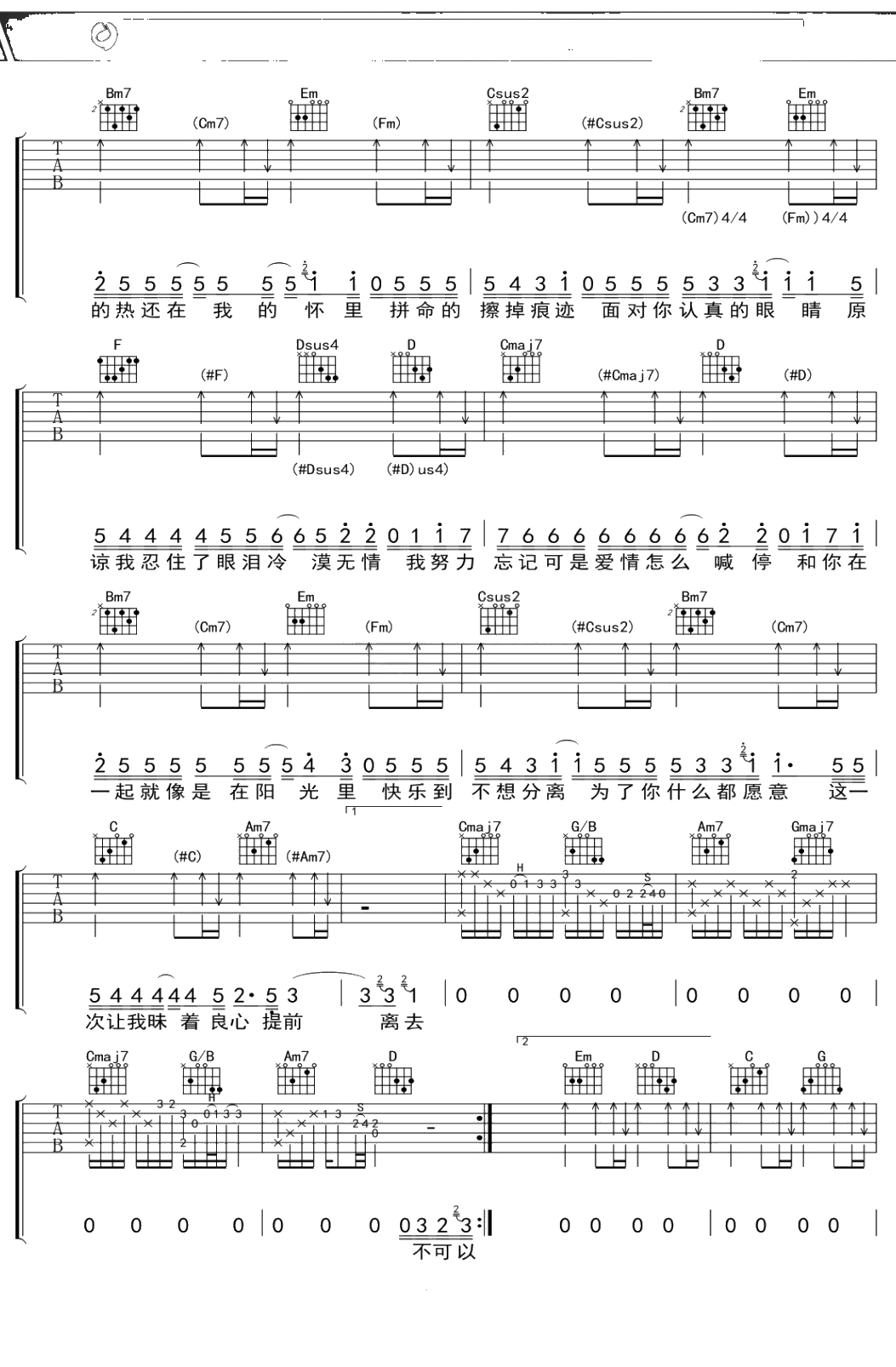 曾佩慈《爱情怎么喊停》吉他谱 弹唱六线谱