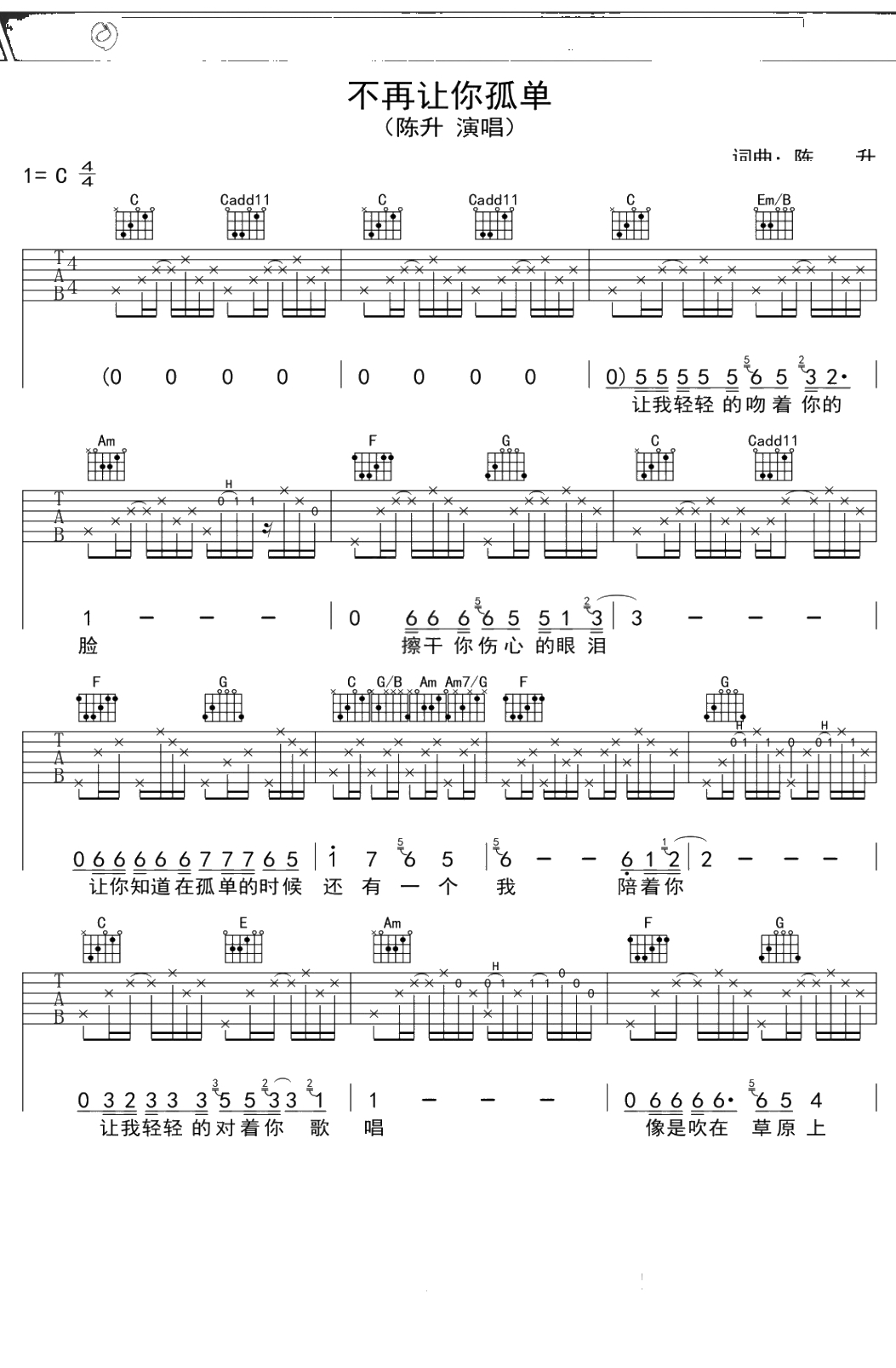 陈升《不让你孤单》吉他谱 弹唱六线谱