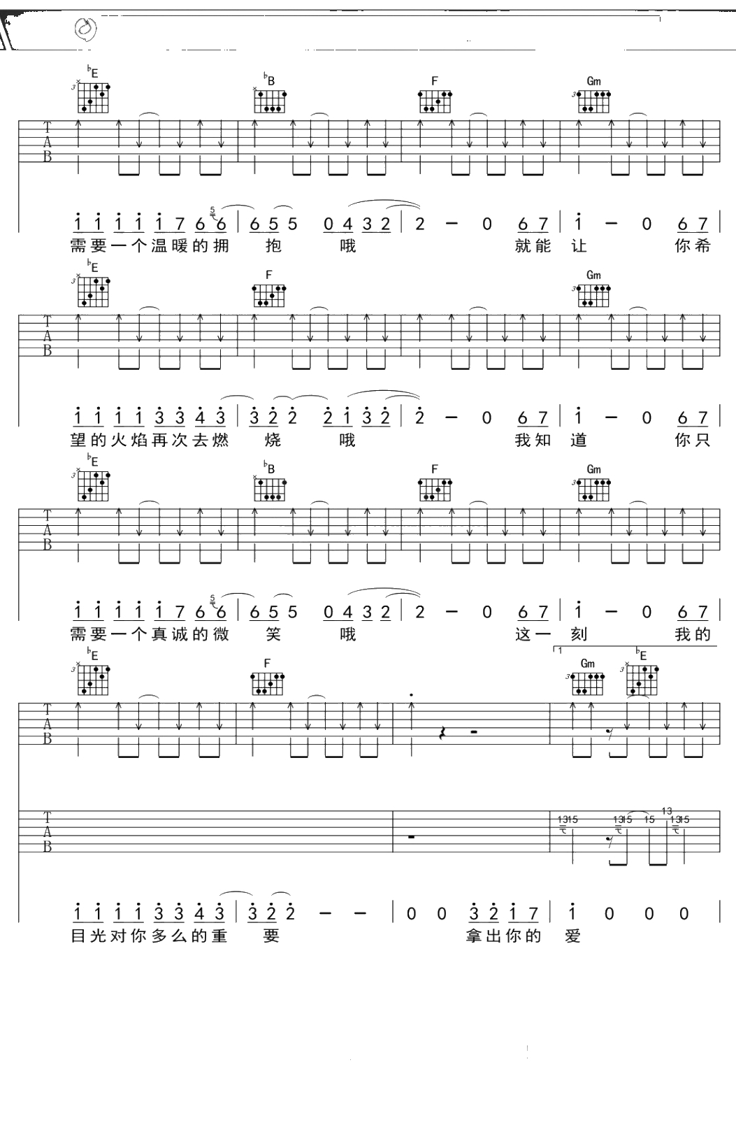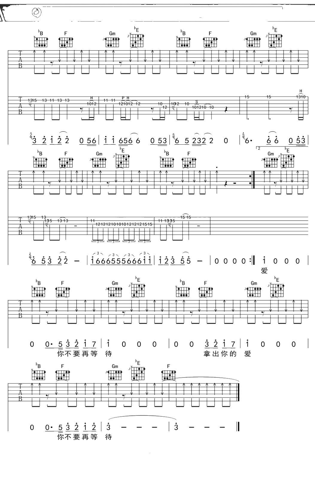 爱乐团《拿出你的爱》吉他谱 弹唱六线谱