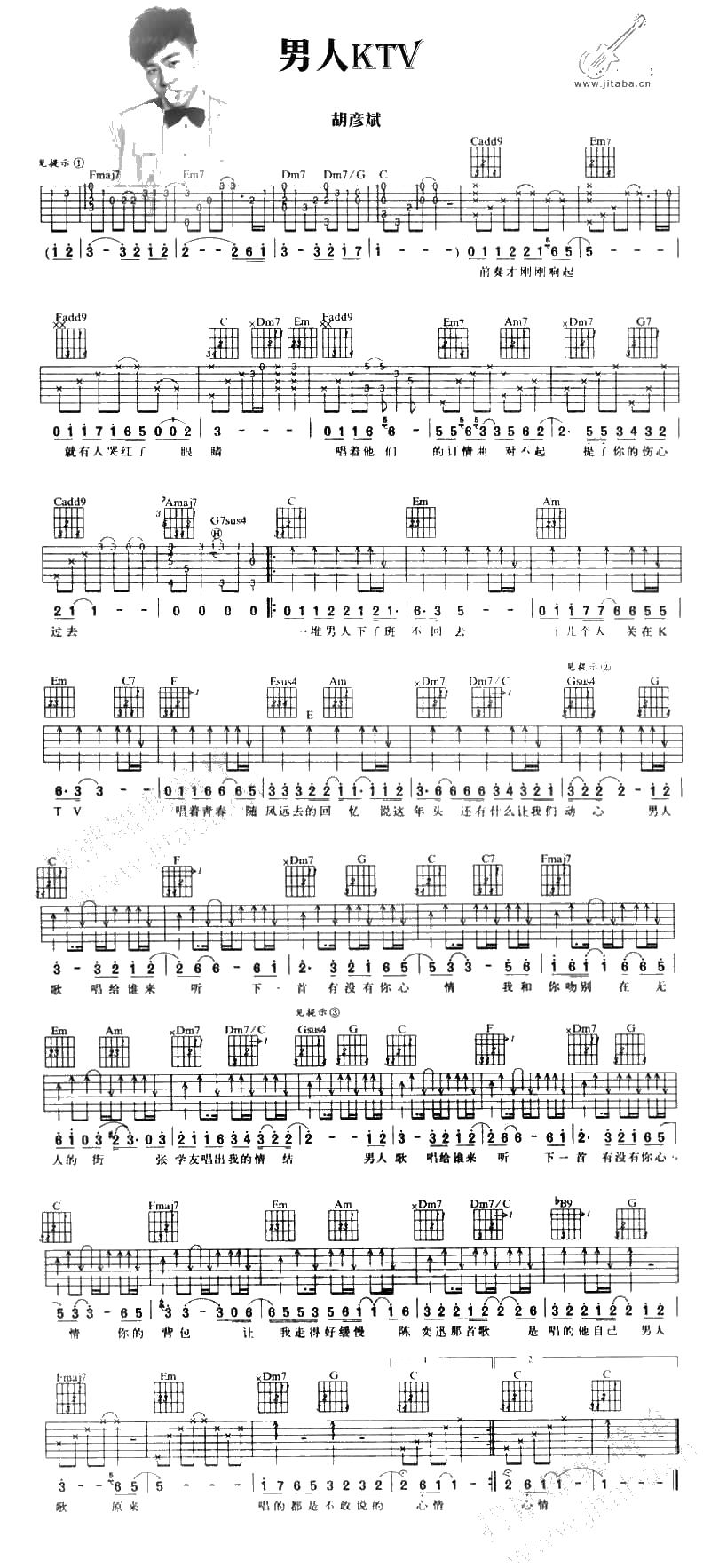 男人KTV吉他谱 胡彦斌 男人歌弹唱谱吉他谱