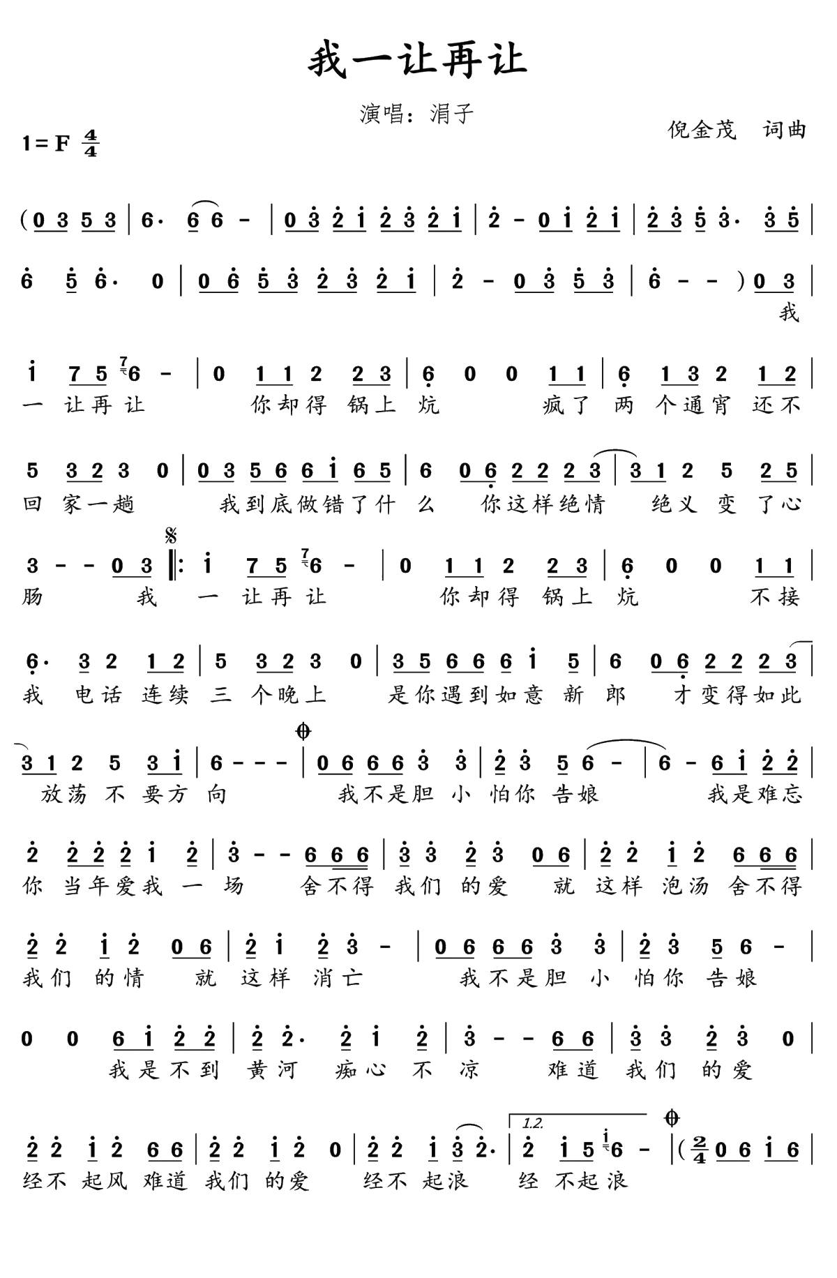 我一让再让简谱歌词