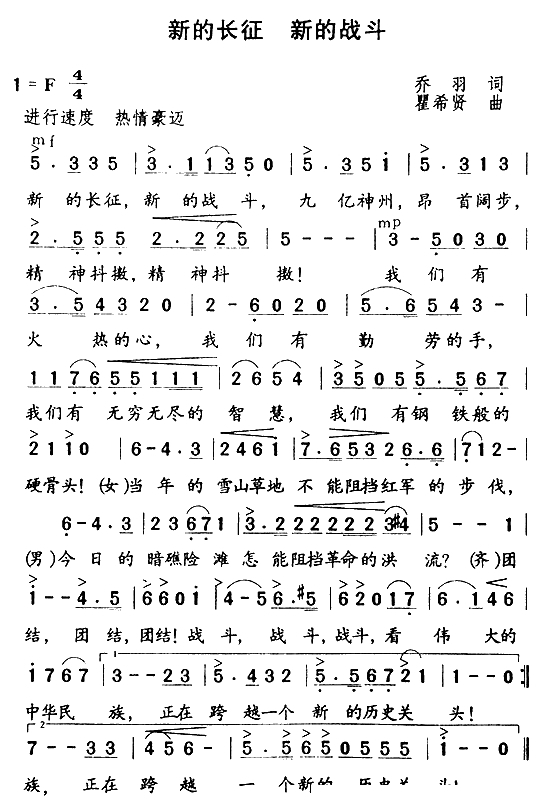 新的长征,新的战斗简谱-乔羽词/瞿希贤曲