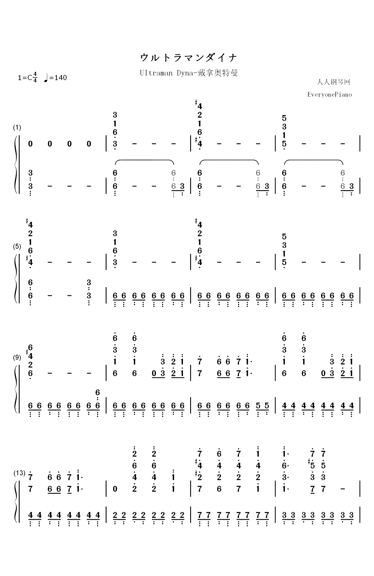 戴拿奥特曼钢琴简谱歌词