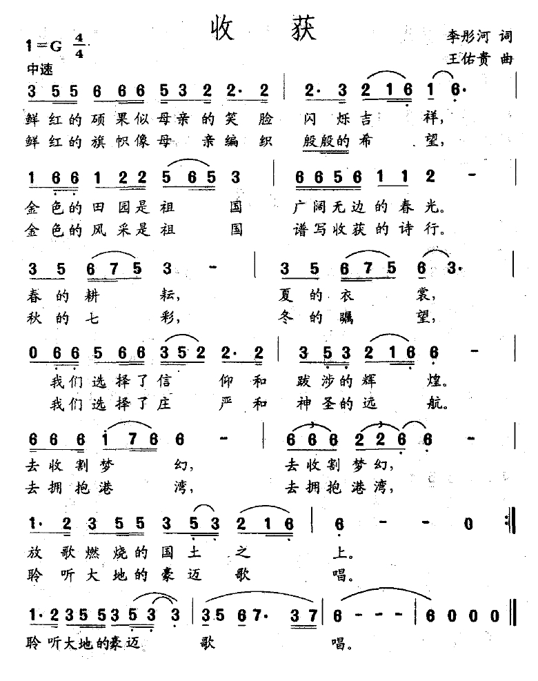 收获简谱-李彤河词 王佑贵曲