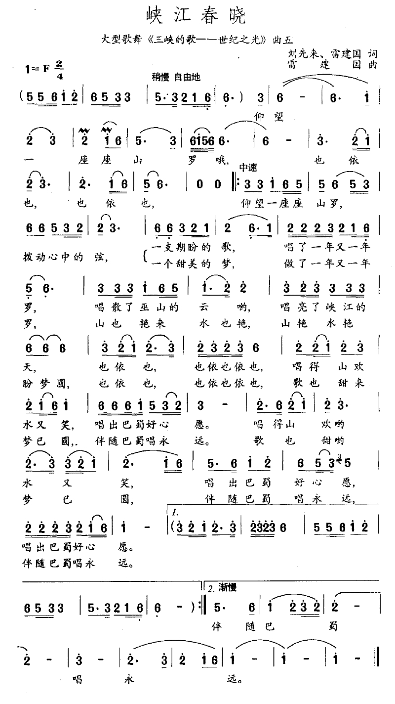 峡江春晓简谱-大型歌舞《三峡的歌--世纪之光》曲五