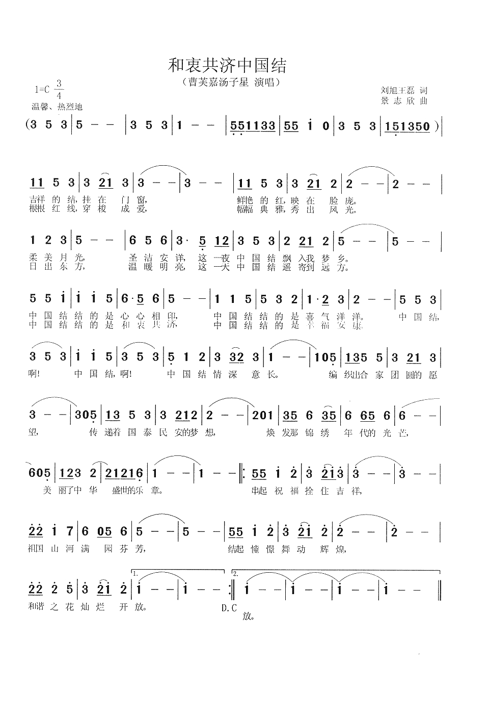和衷共济中国结简谱-曹芙嘉/汤子星演唱