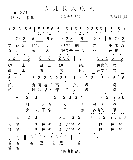 女儿长大成人简谱