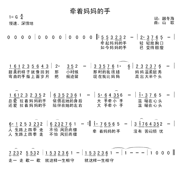牵着妈妈的手简谱歌词