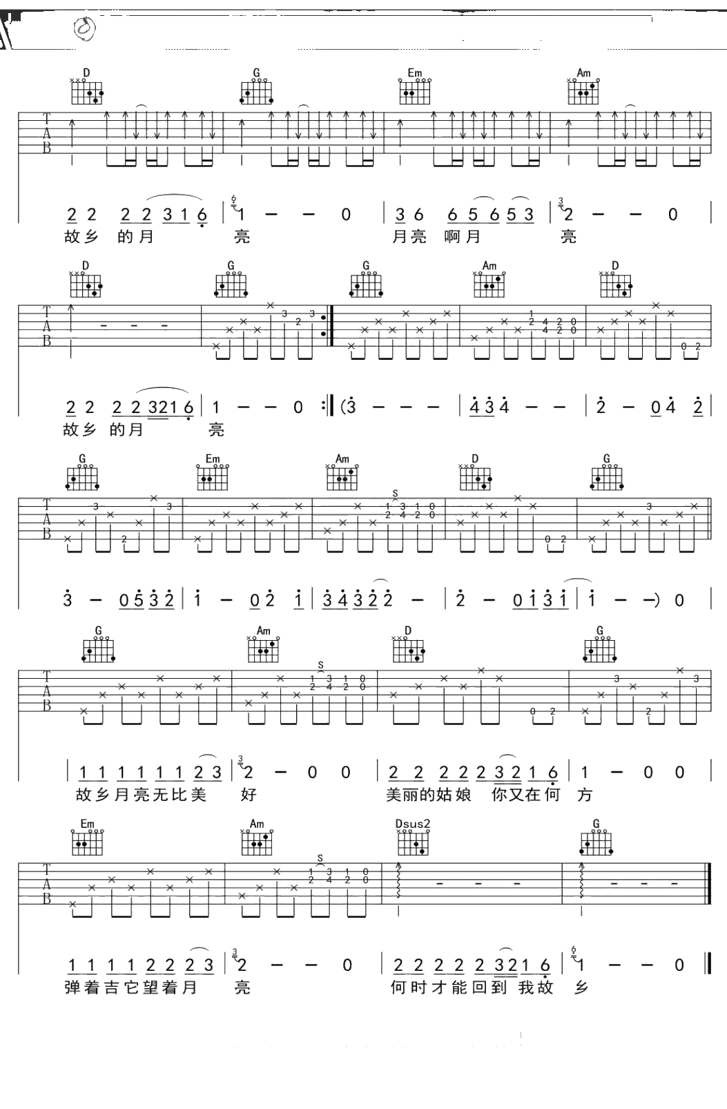 故乡的月亮吉他谱 小舟 G调吉他弹唱曲谱吉他谱