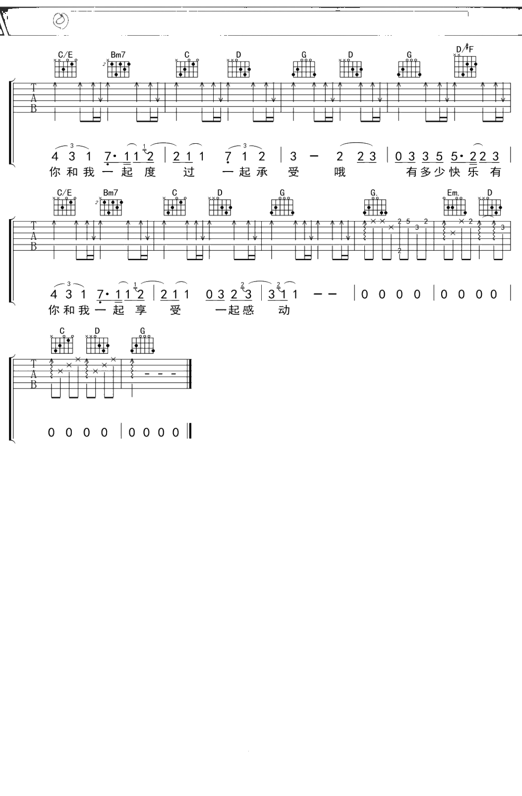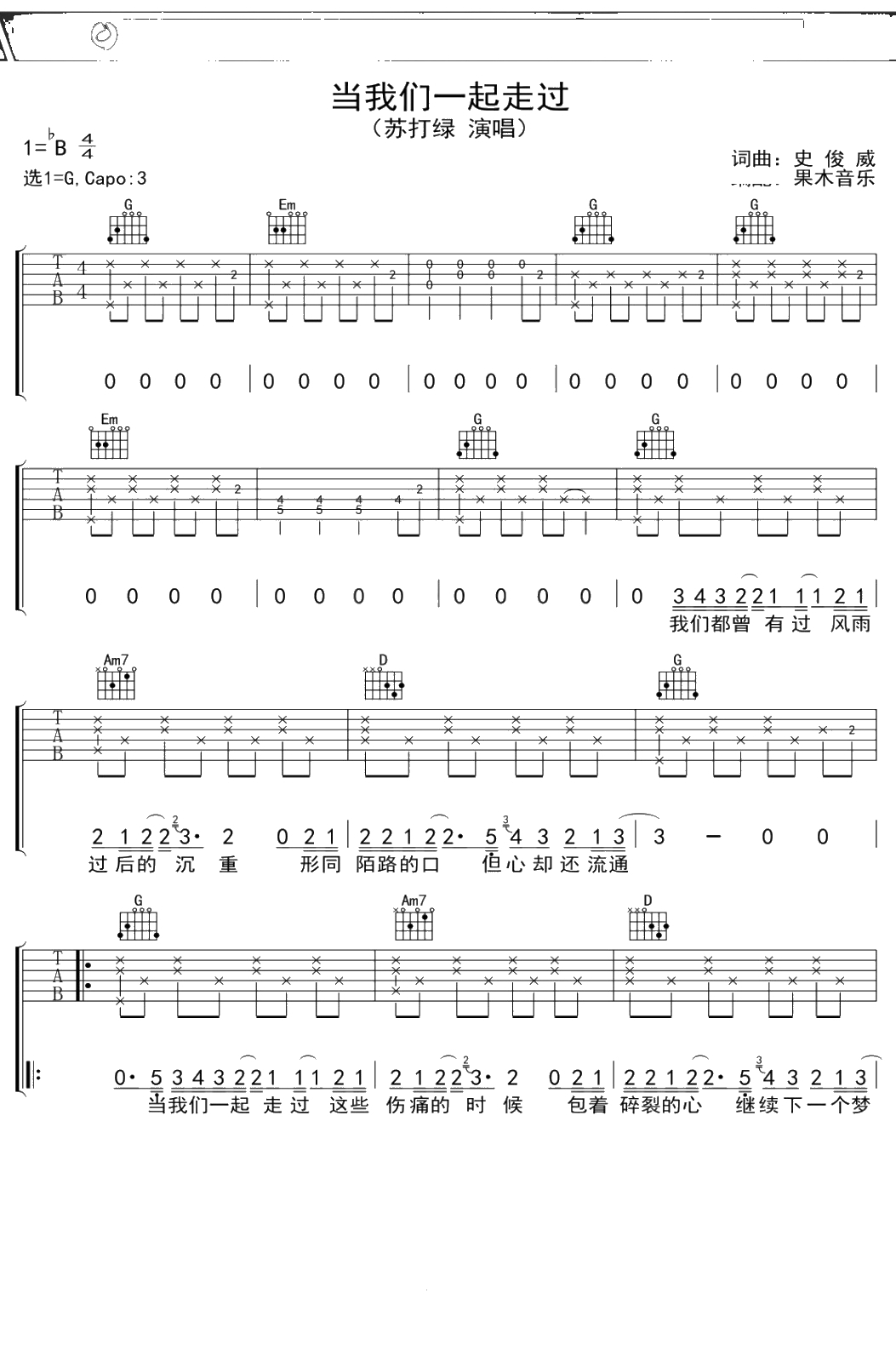当我们一起走过吉他谱 苏打绿 弹唱六线谱