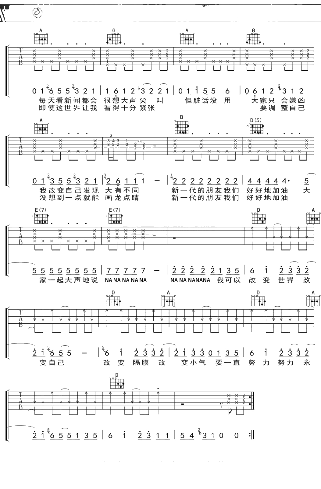 改变自己吉他谱 王力宏 A调吉他弹唱曲谱吉他谱