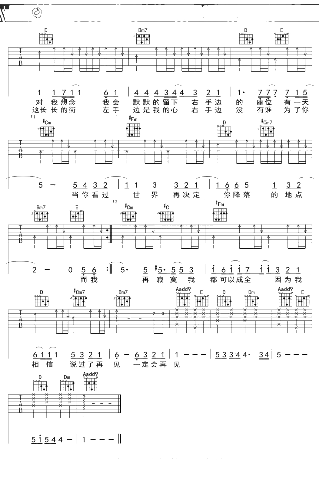 右手边吉他谱 光良 A调 吉他弹唱六线谱吉他谱