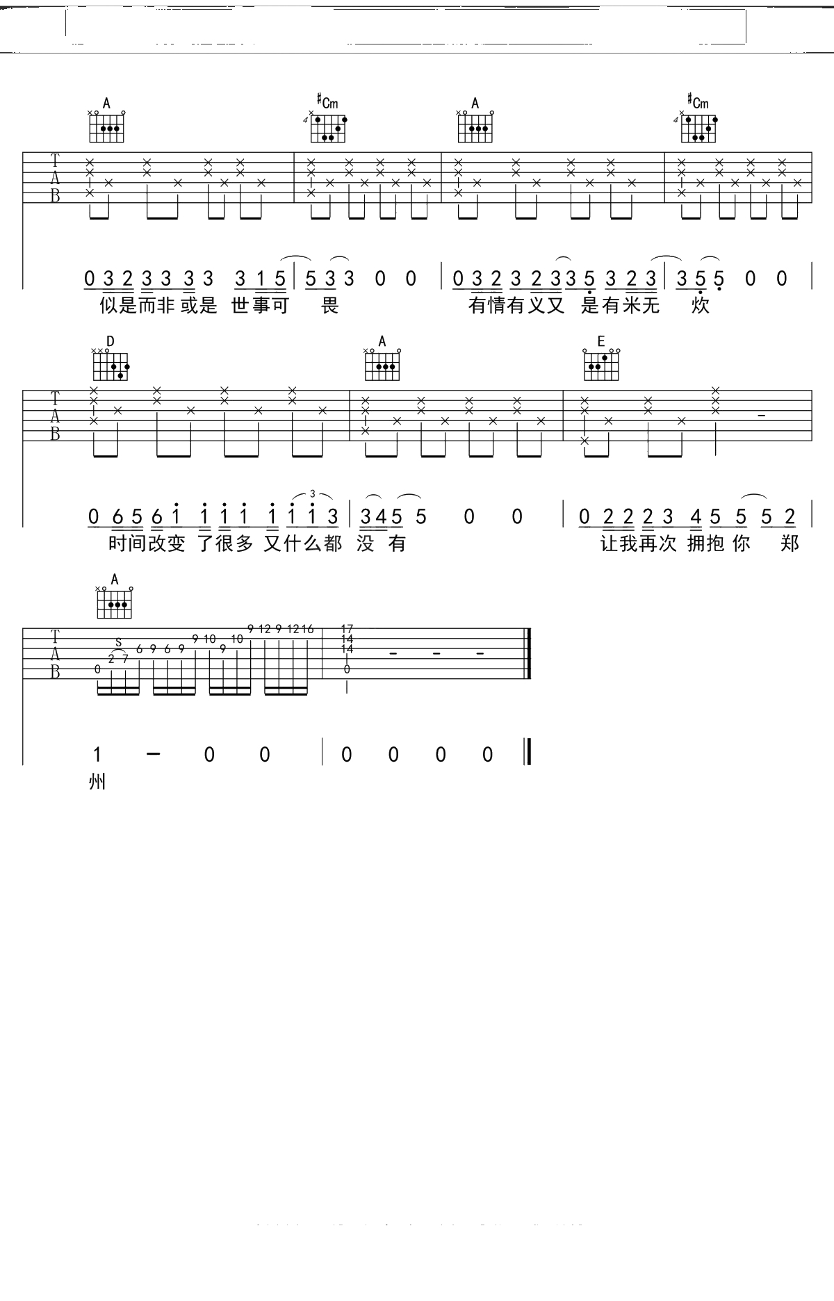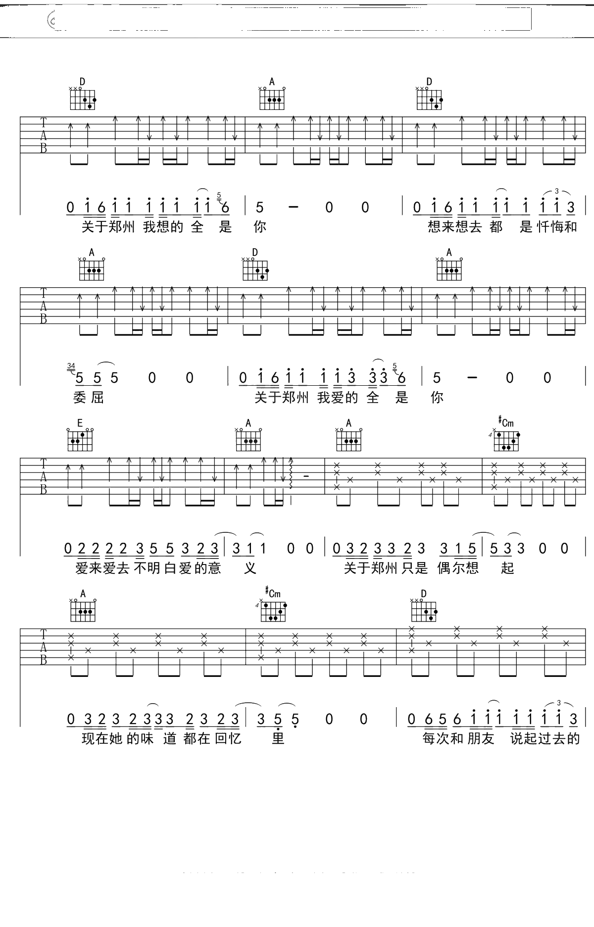 李志《关于郑州的记忆》吉他谱 A调弹唱六线谱