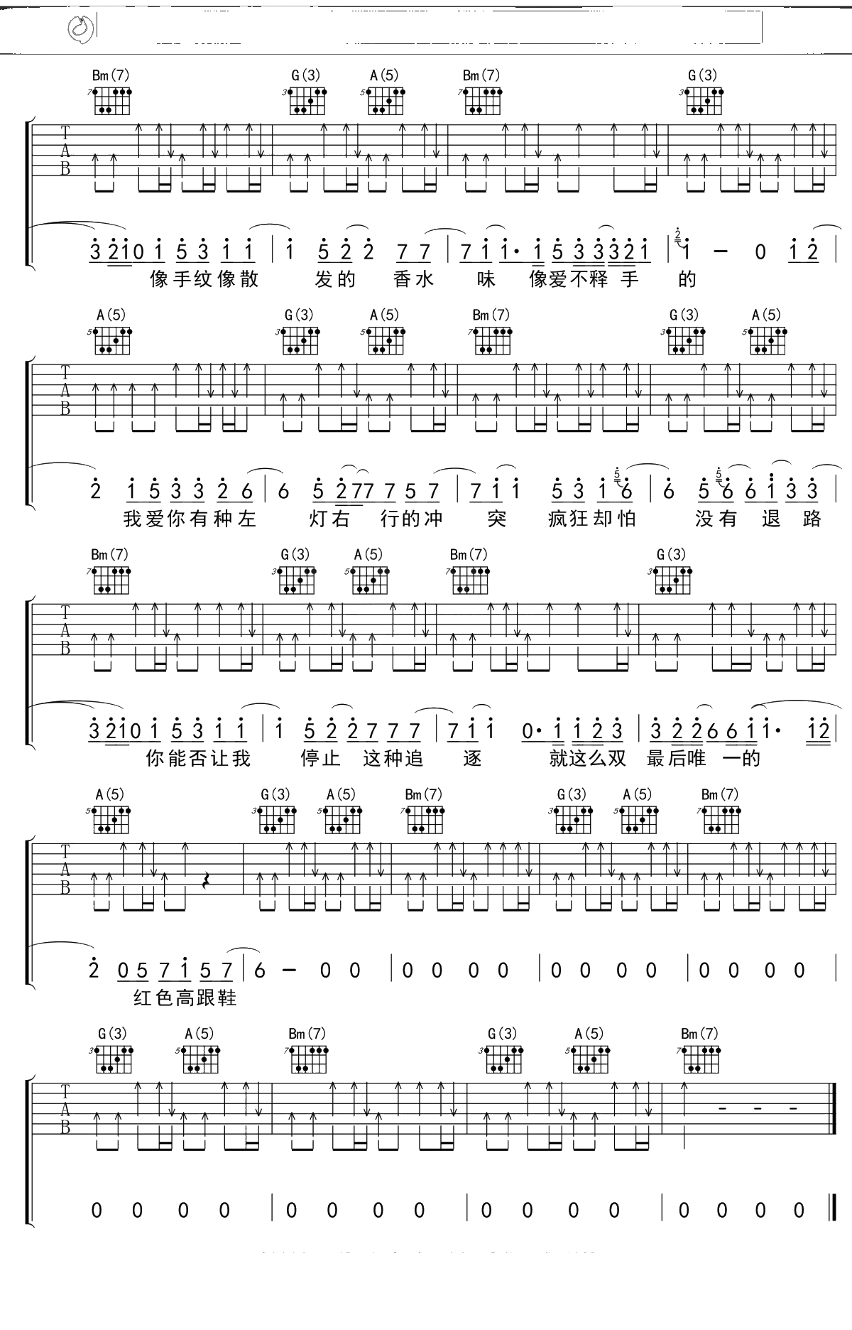 蔡健雅《红色高跟鞋》吉他谱 D调弹唱六线谱
