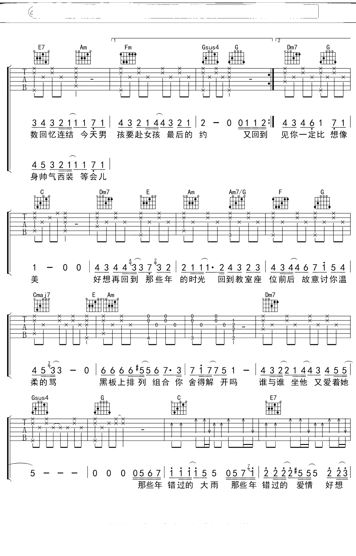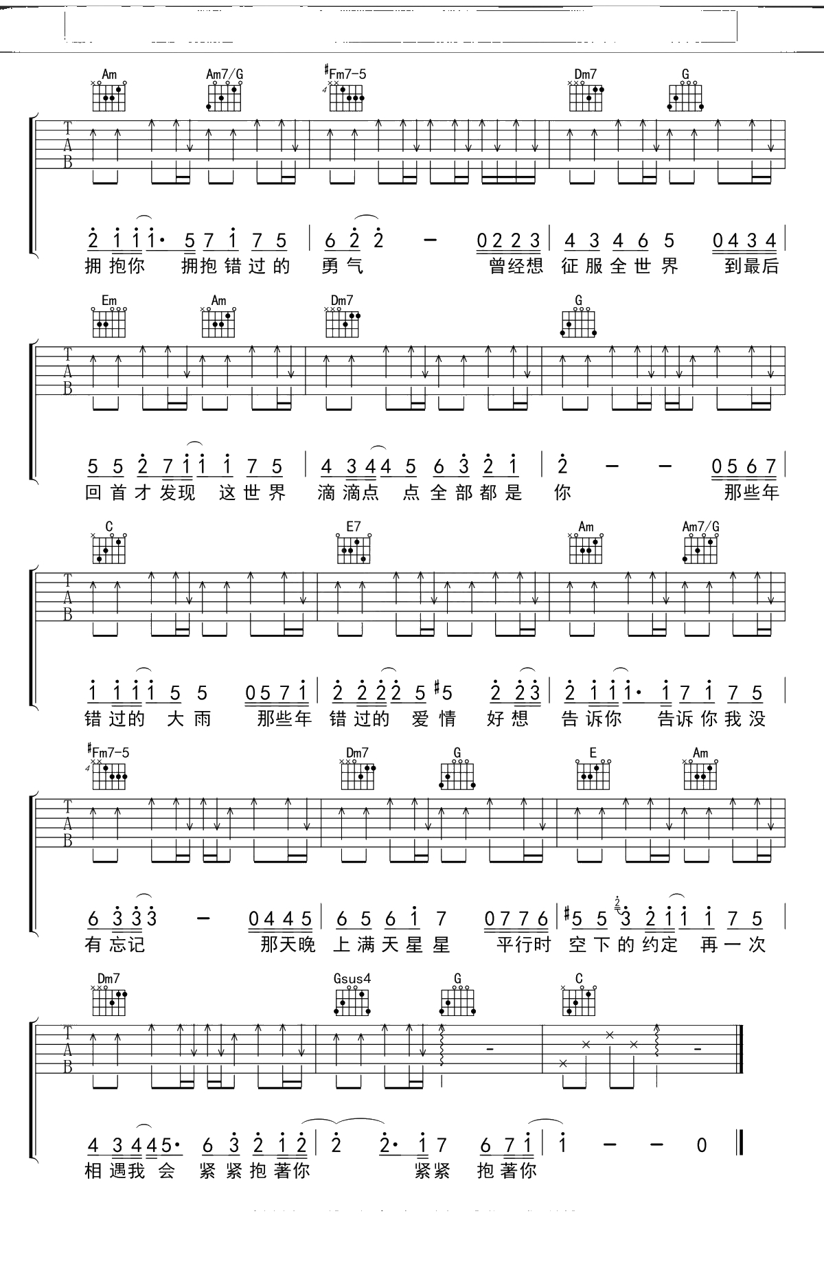 胡夏《那些年》吉他谱 C调弹唱六线谱