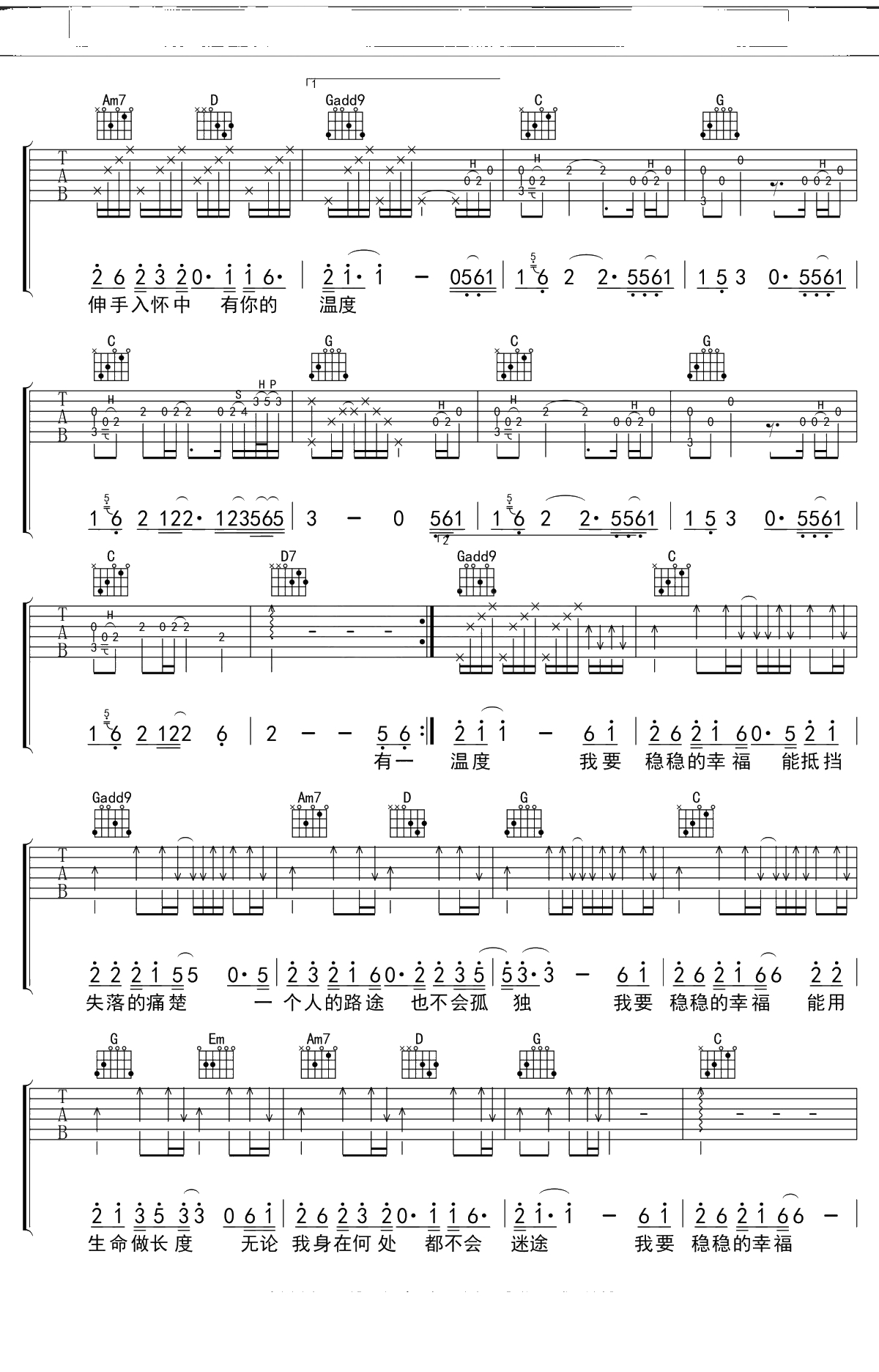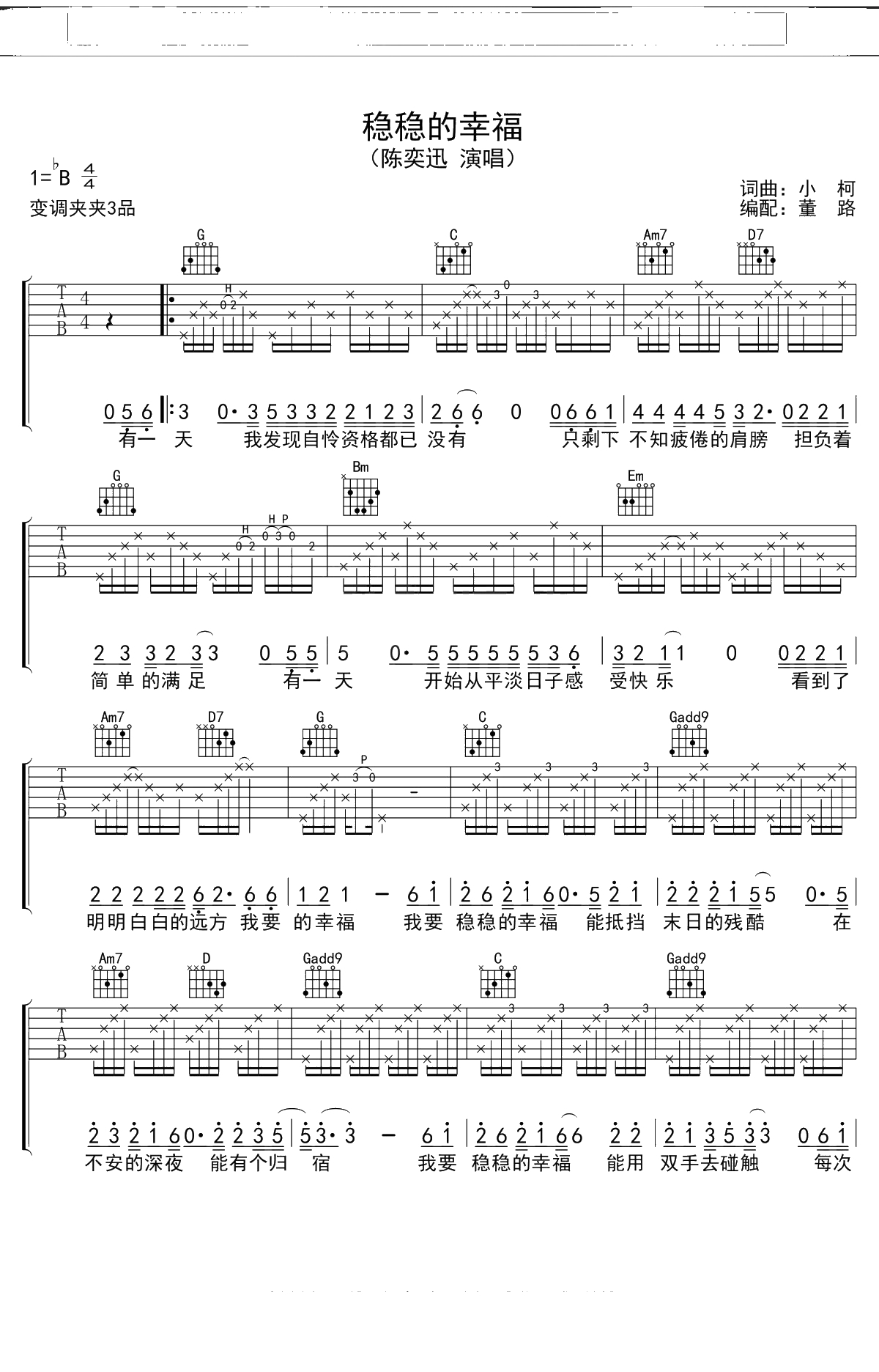 陈奕迅《稳稳的幸福》吉他谱 B调弹唱六线谱吉他谱