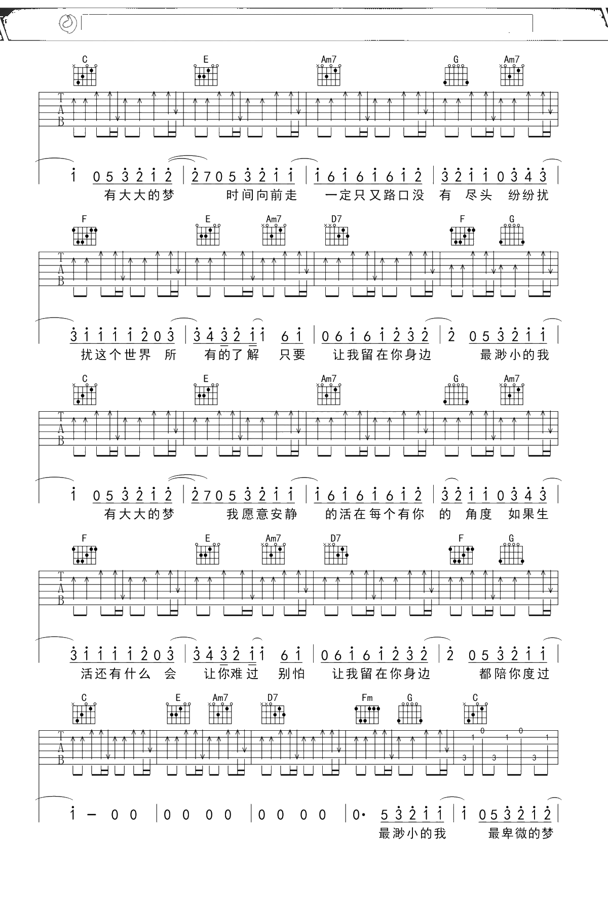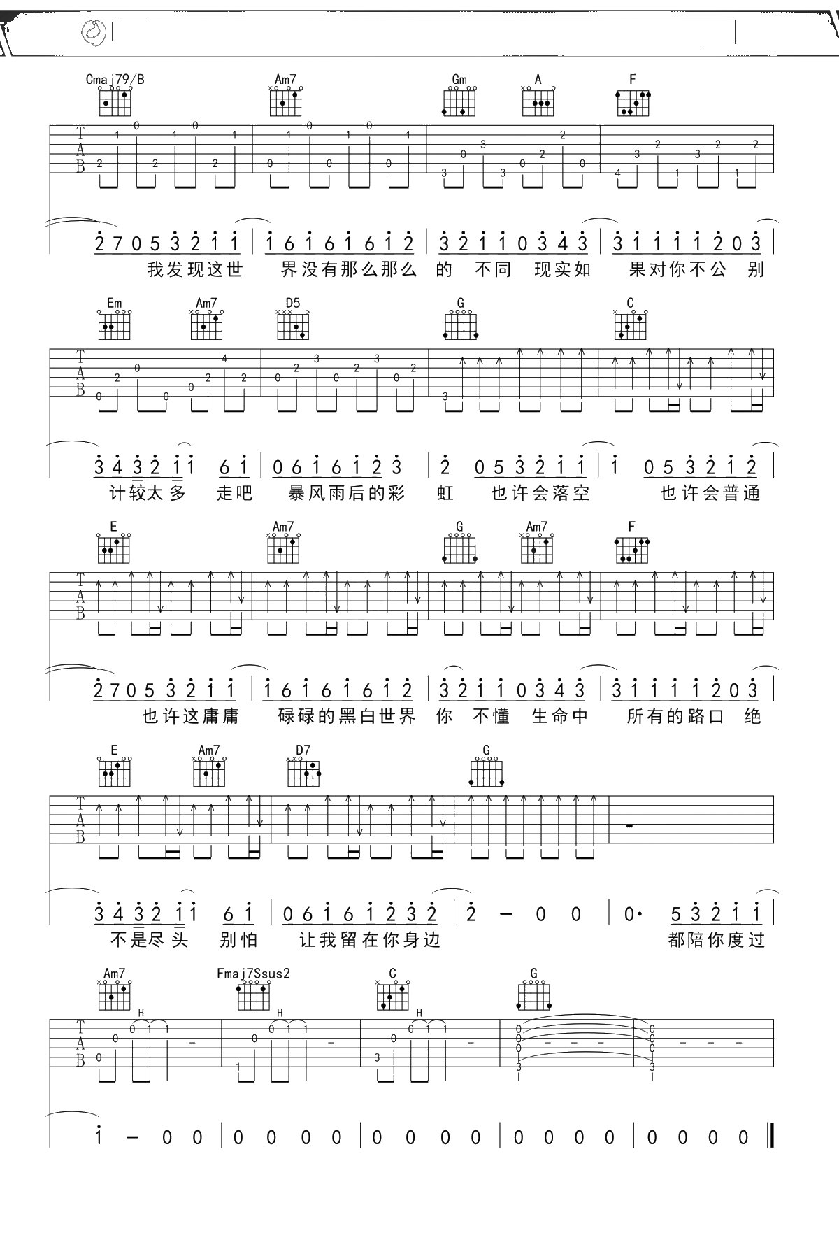 陈奕迅《让我留在你身边》吉他谱 C调弹唱六线谱