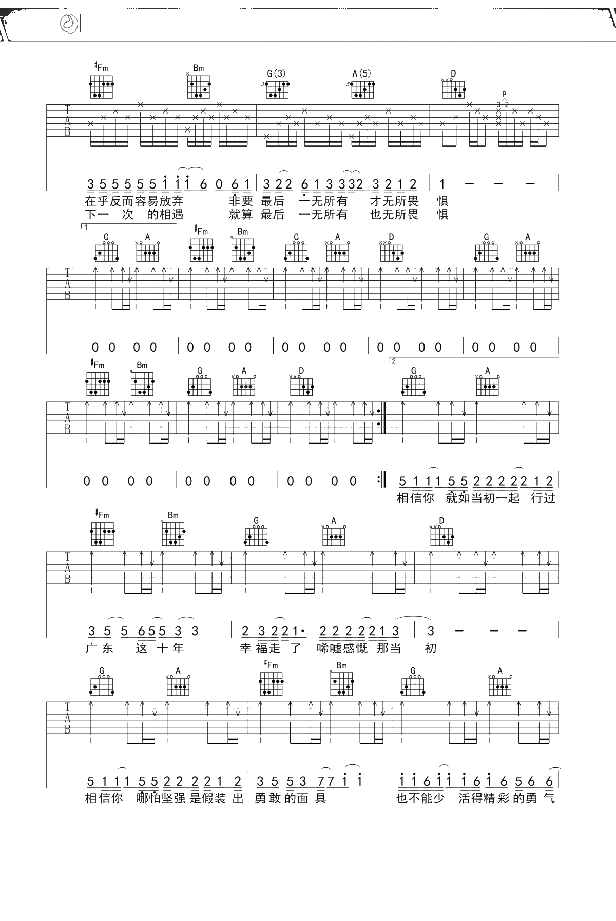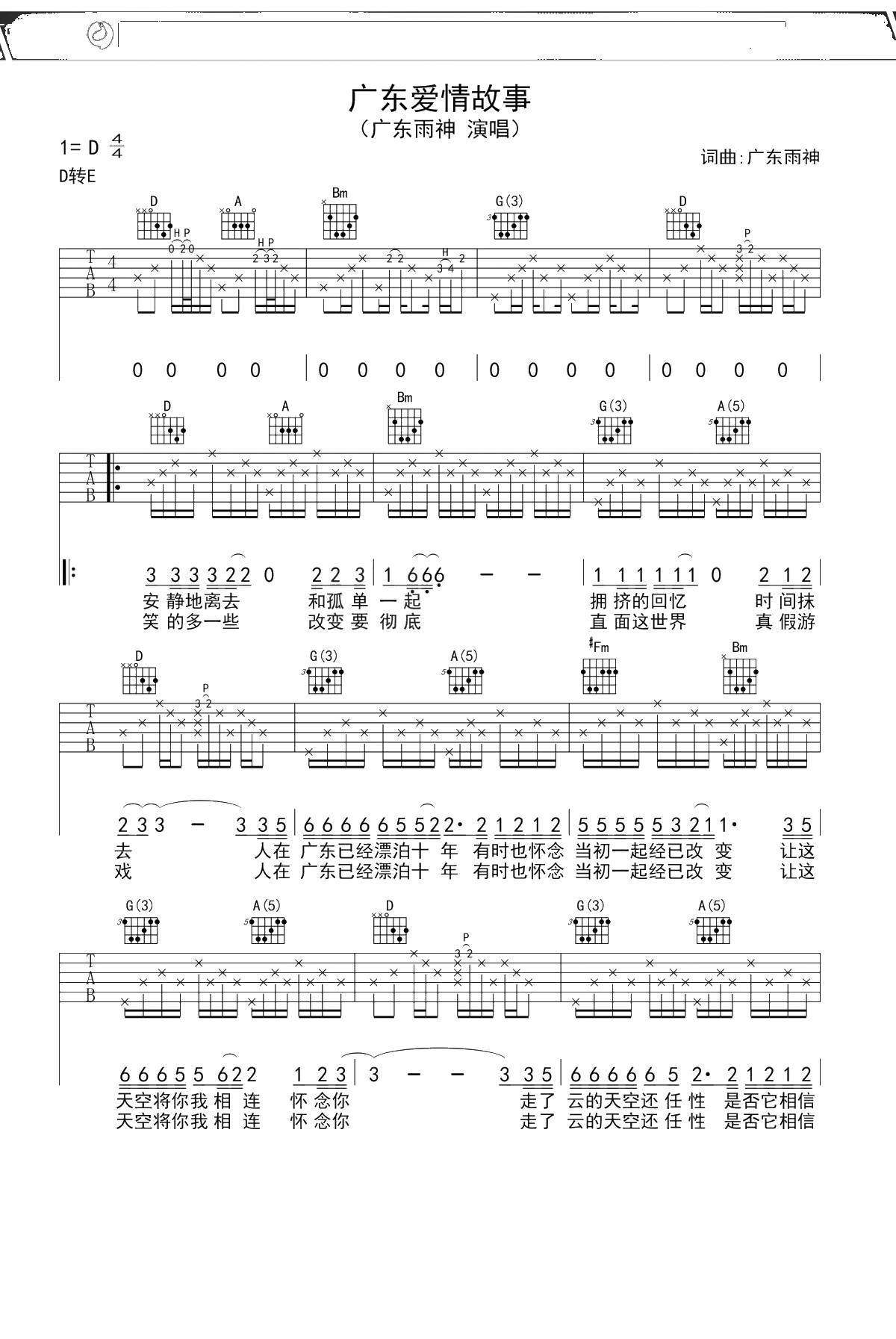广东雨神《广东爱情故事》吉他谱 弹唱六线谱