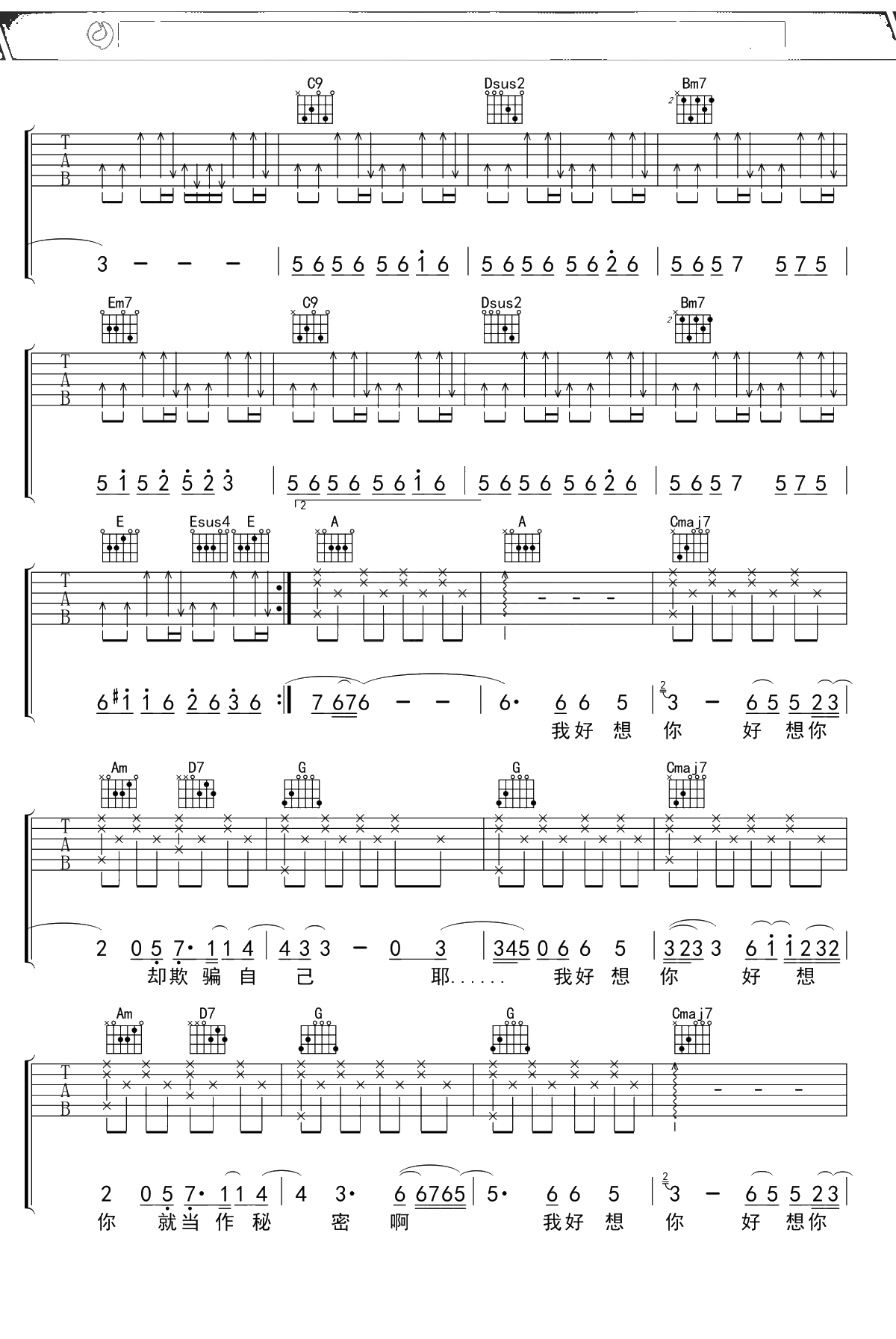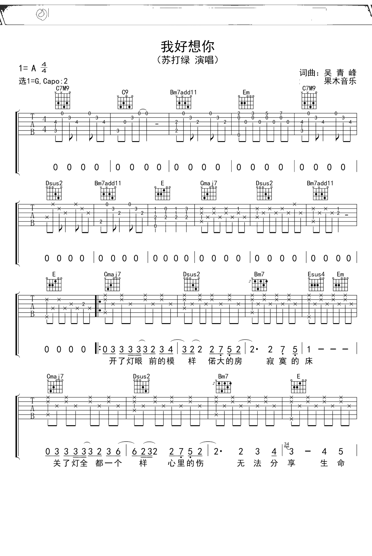 苏打绿《我好想你》吉他谱 G调弹唱六线谱吉他谱