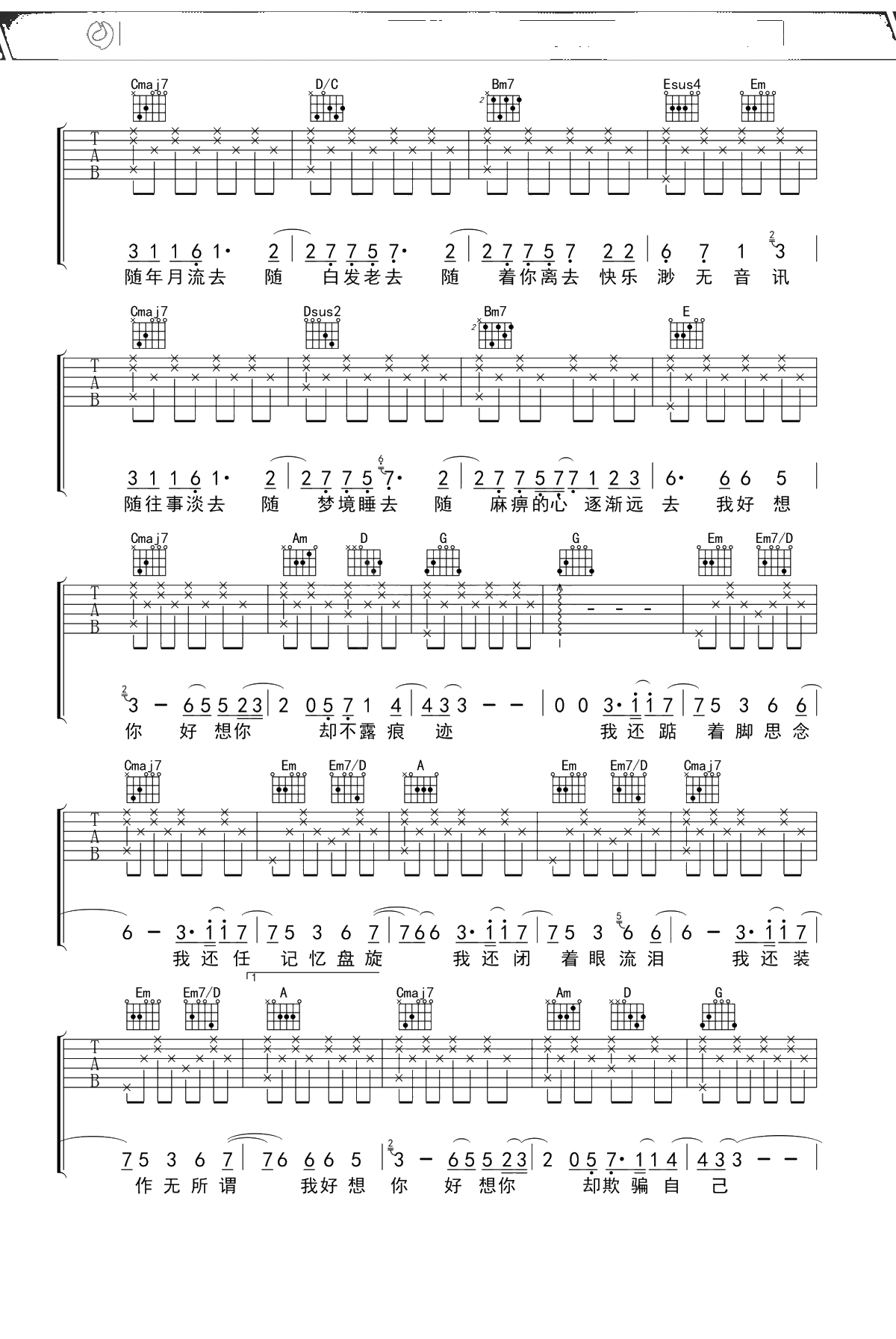 苏打绿《我好想你》吉他谱 G调弹唱六线谱