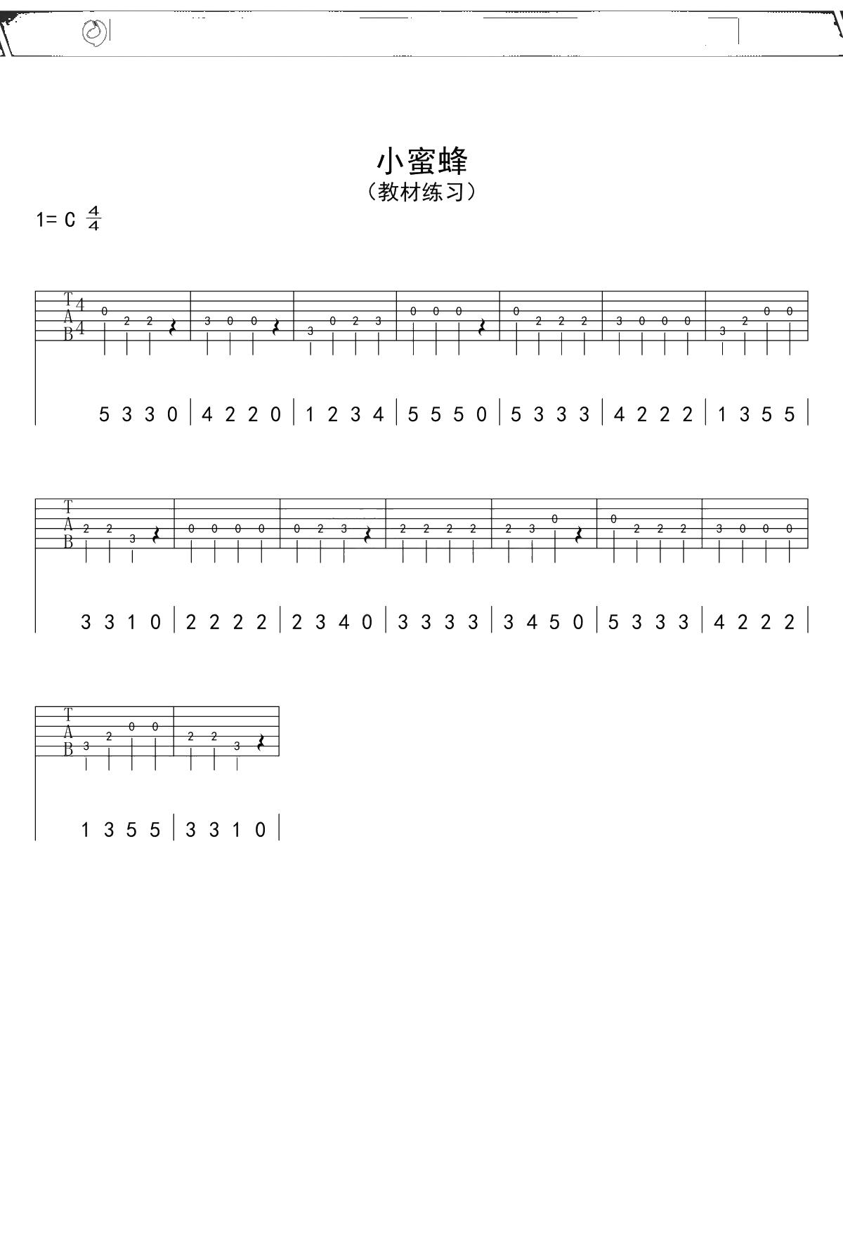 《小蜜蜂》吉他谱 C调果木浪子入门曲谱吉他谱