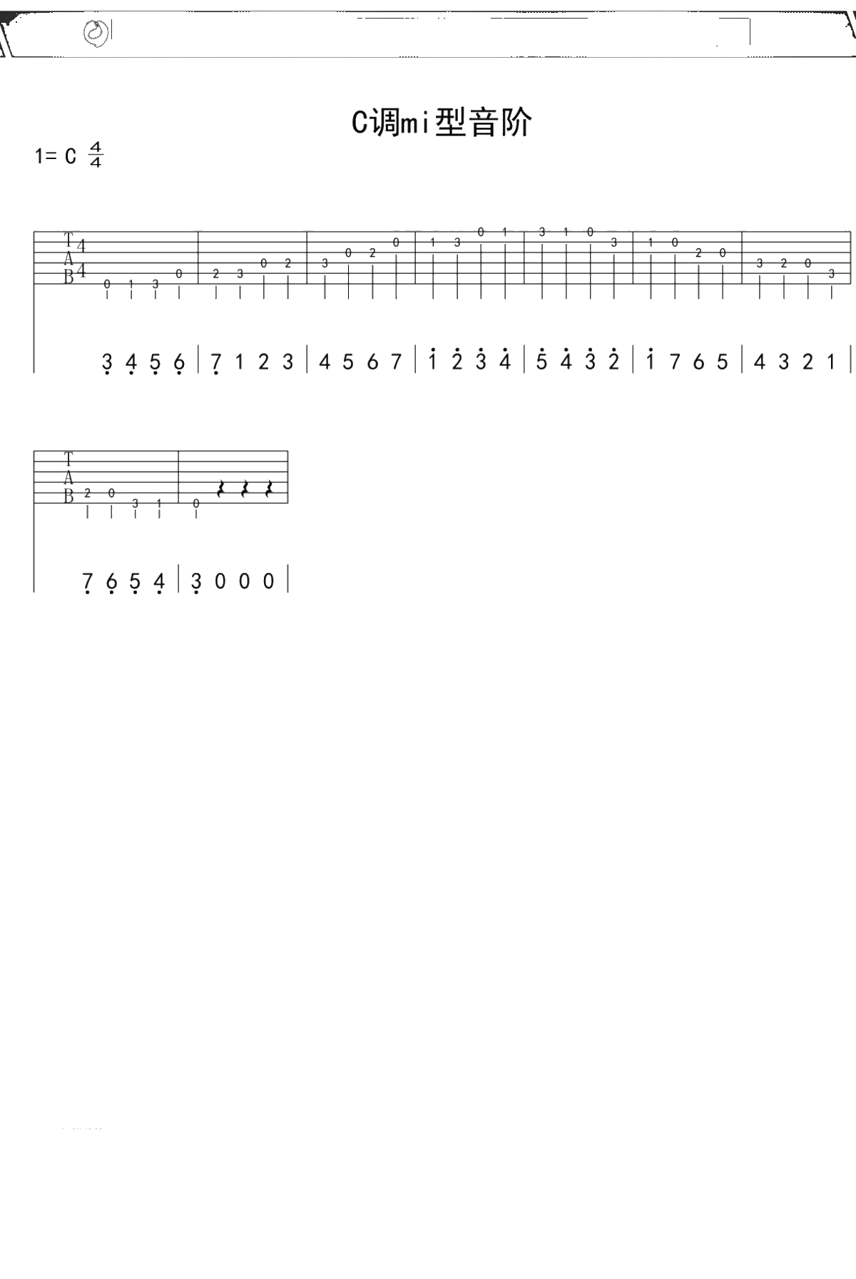 C调mi型音阶 果木浪子入门曲谱吉他谱