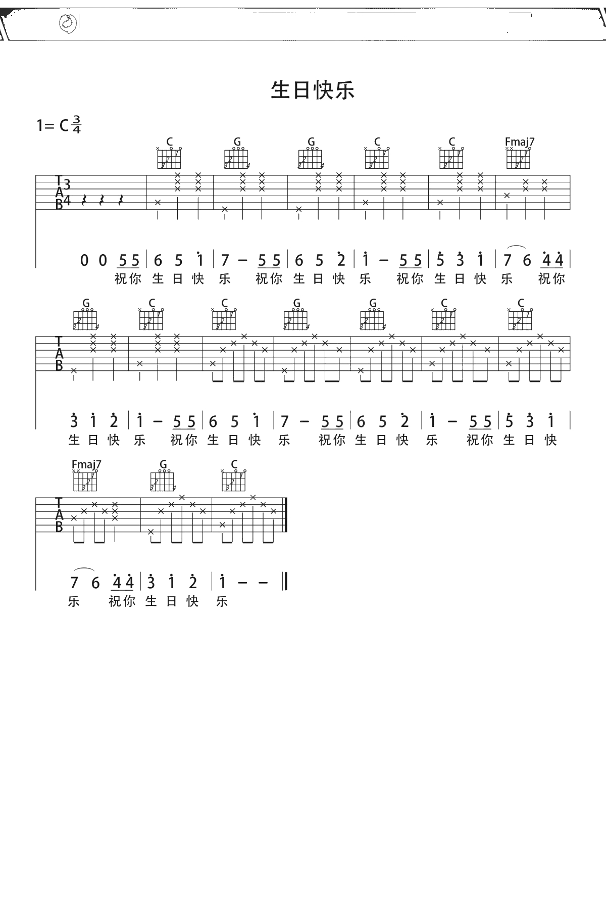 《生日快乐》吉他谱 C调果木浪子入门曲谱