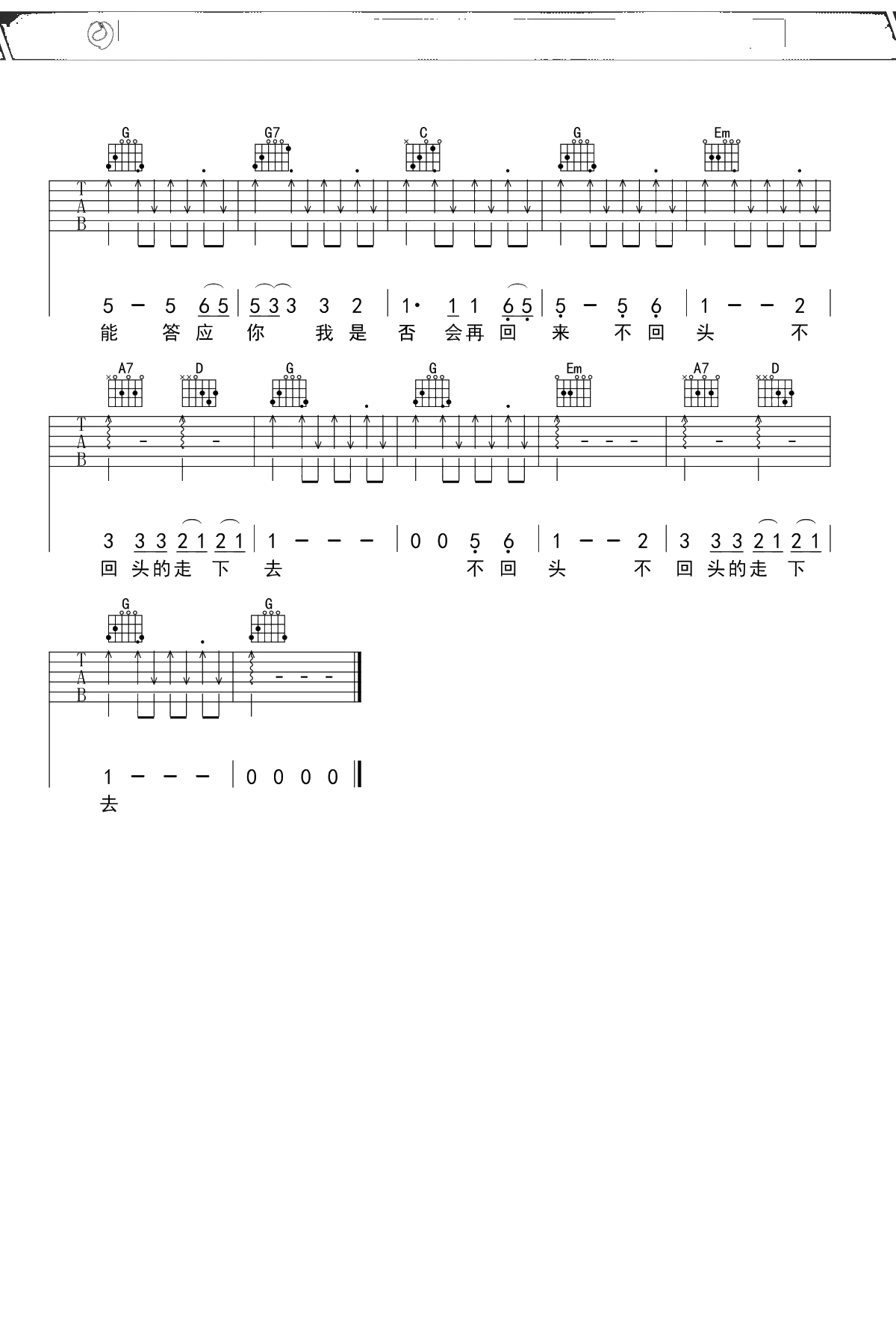 《再见》吉他谱 G调果木浪子吉他入门曲谱吉他谱