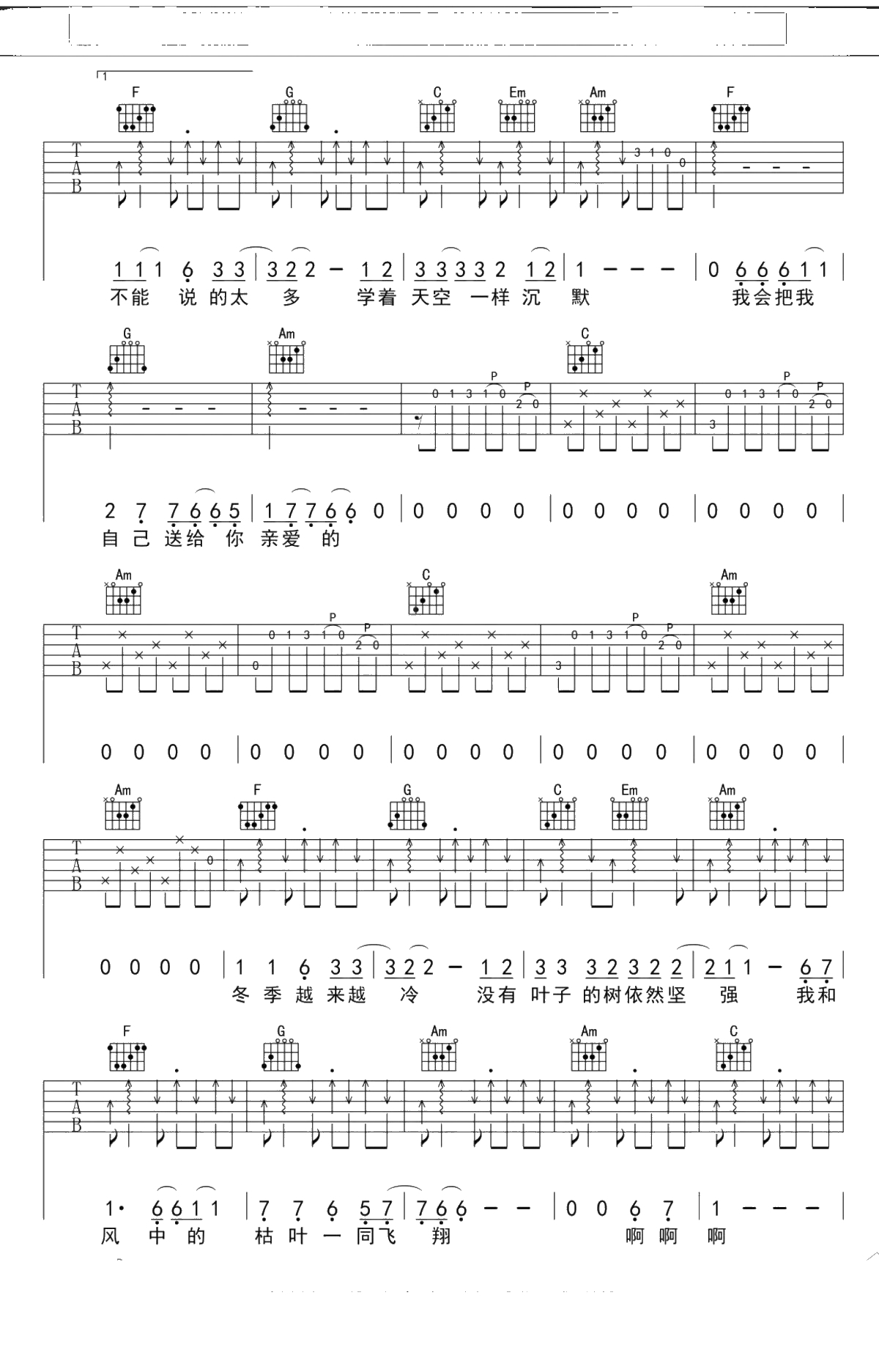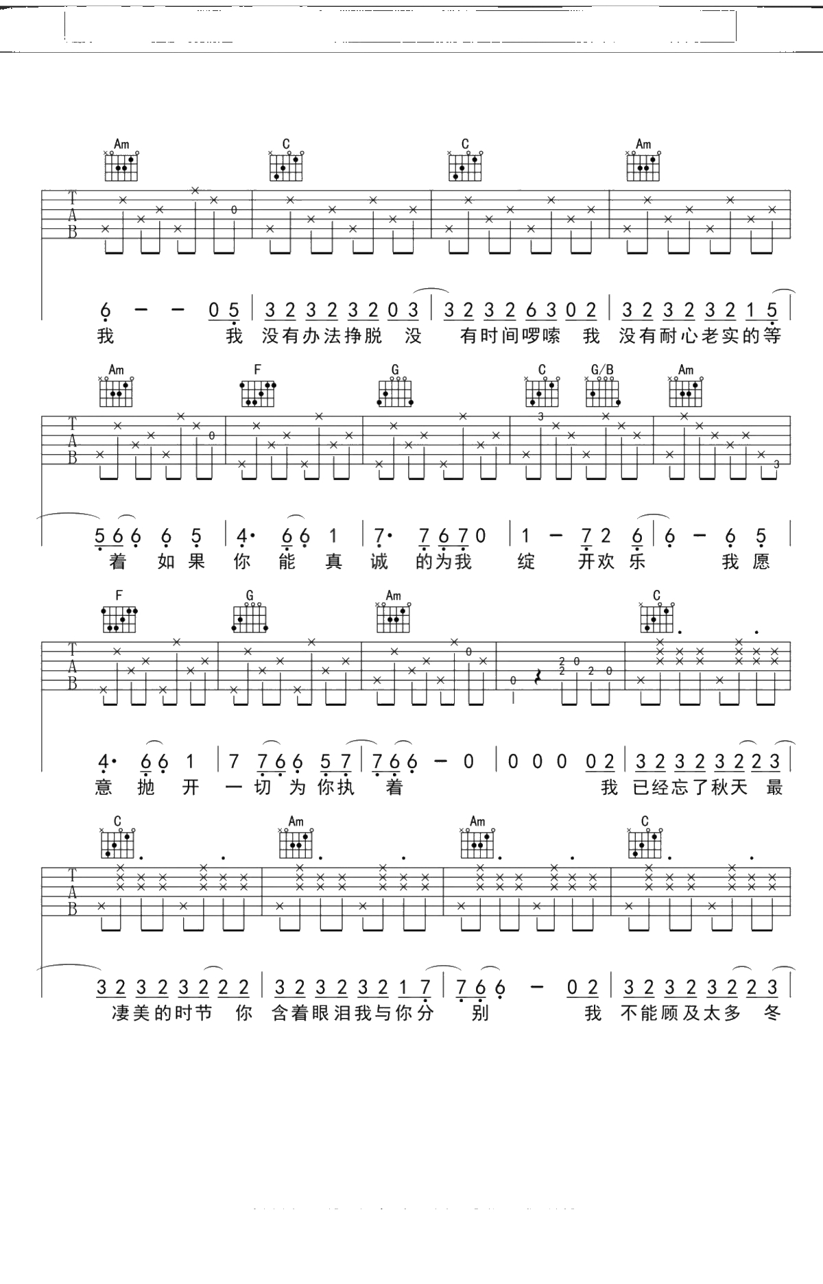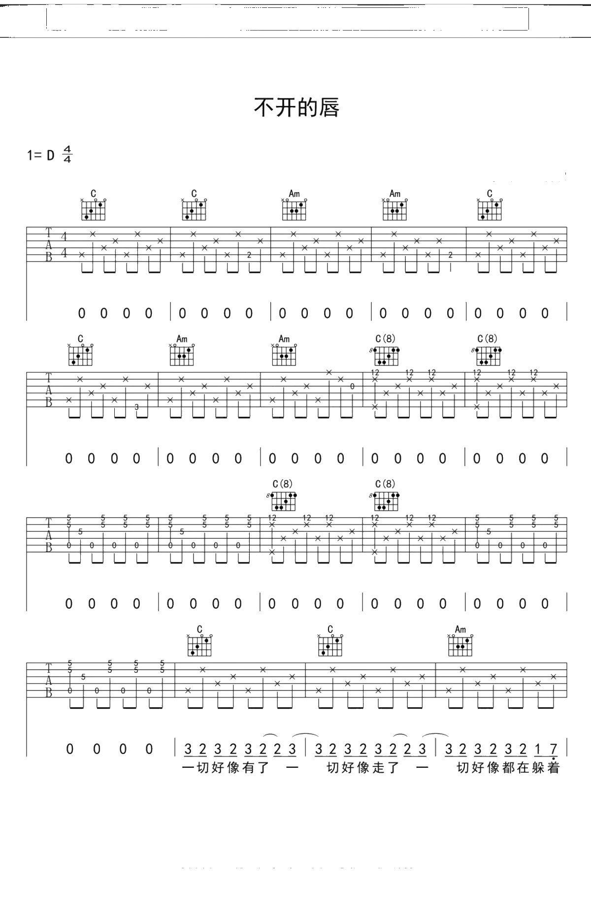 《不开的唇》吉他谱 D调果木浪子吉他弹唱曲谱吉他谱