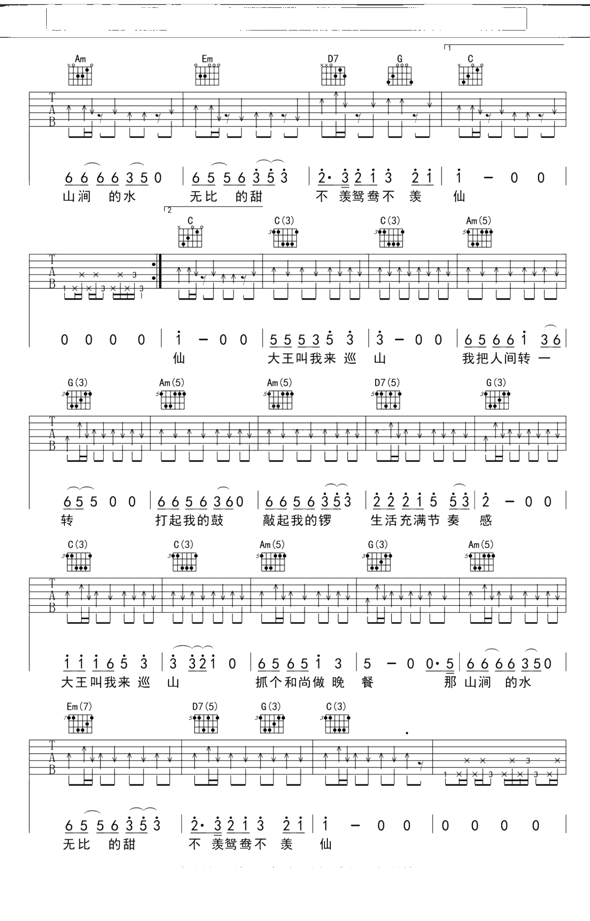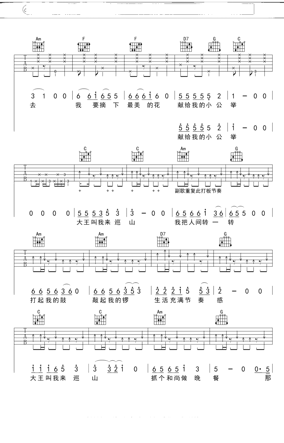 《大王叫我来巡山》吉他谱 C调果木浪子吉他弹唱曲谱吉他谱