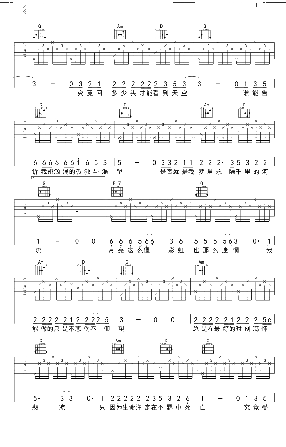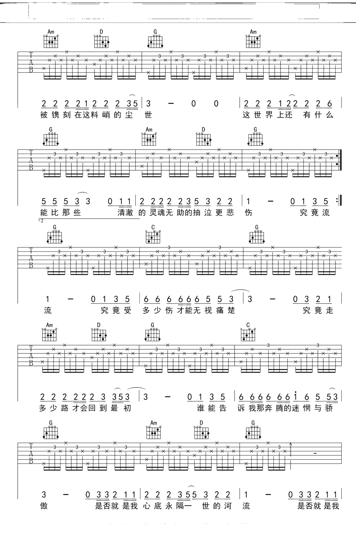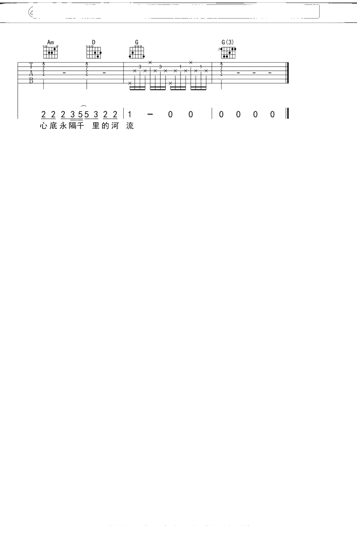 《河流》吉他谱 G调果木浪子吉他弹唱曲谱吉他谱
