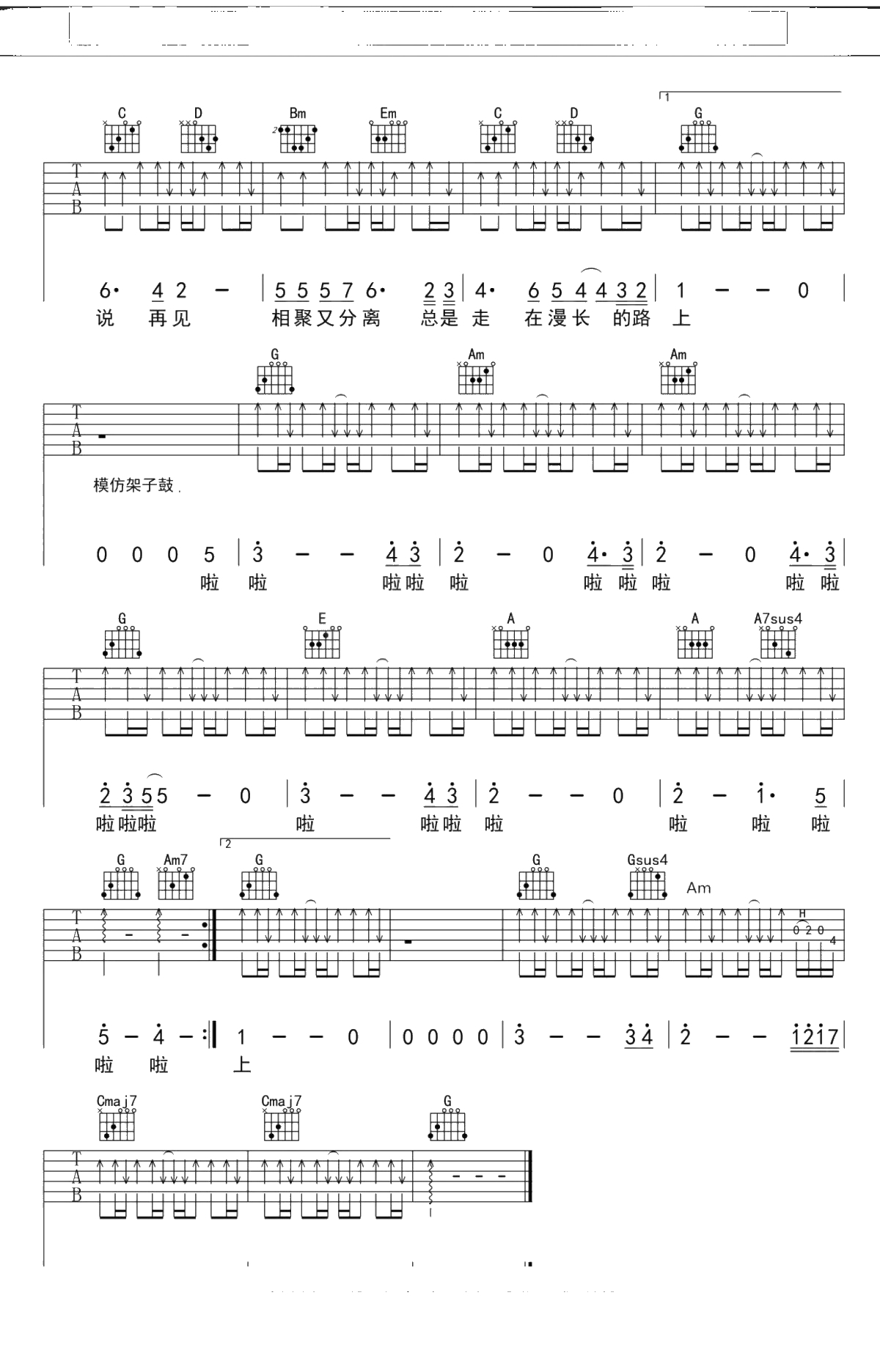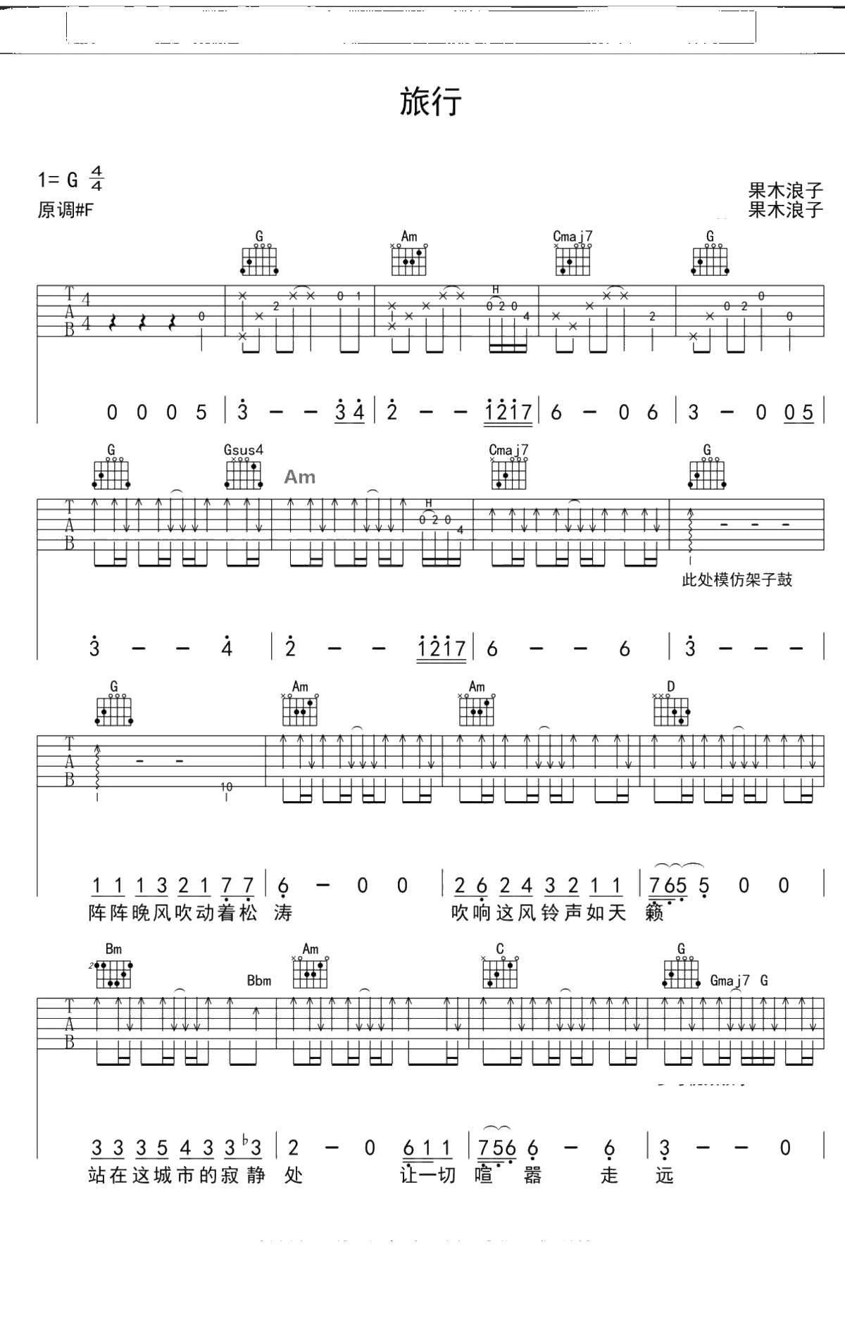 《旅行》吉他谱 G调果木浪子吉他弹唱曲谱吉他谱