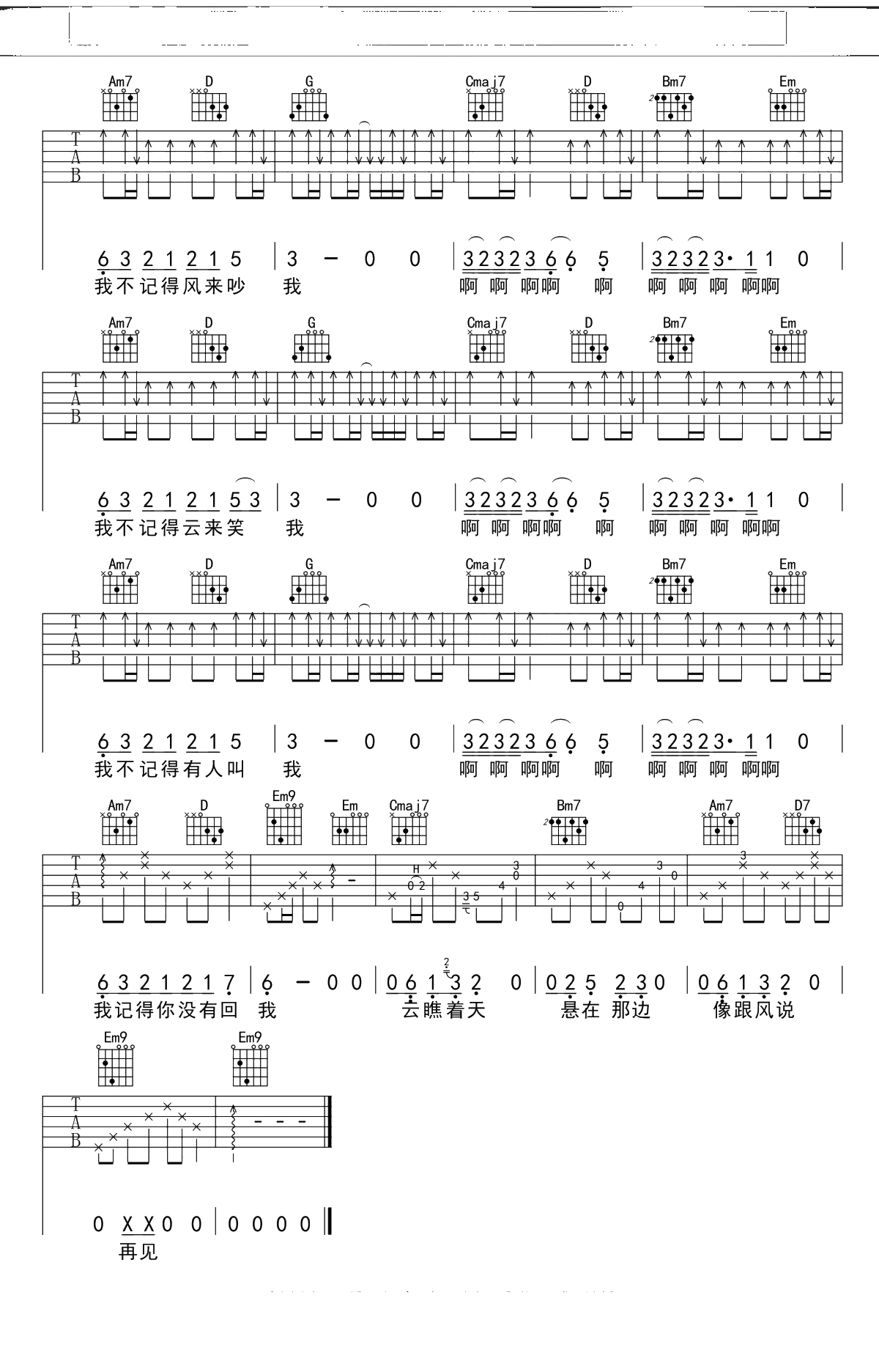 记得吉他谱
