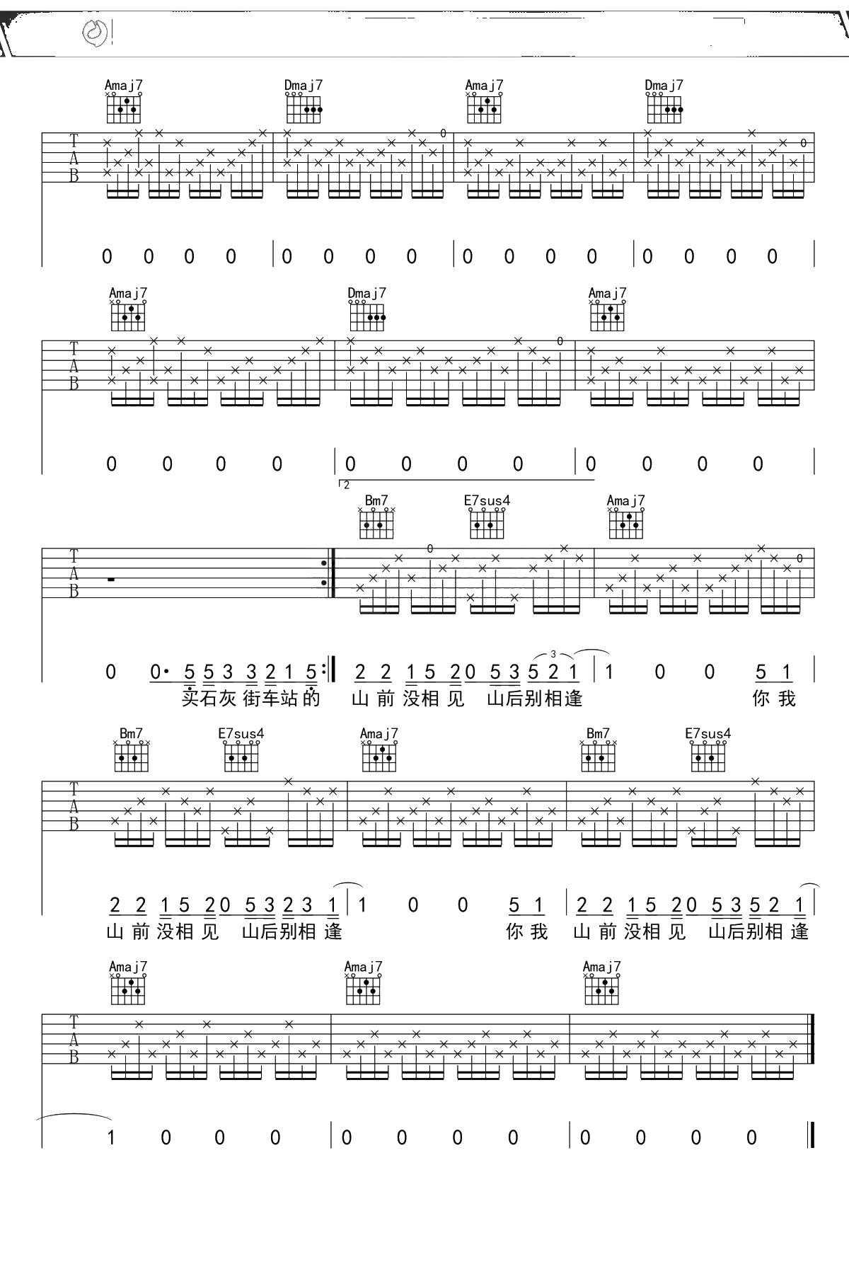 宋冬野《郭源潮》吉他谱 A调弹唱六线谱