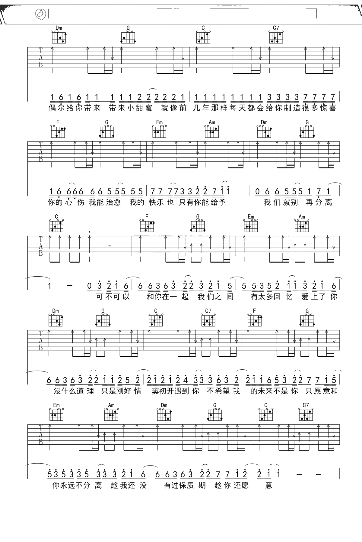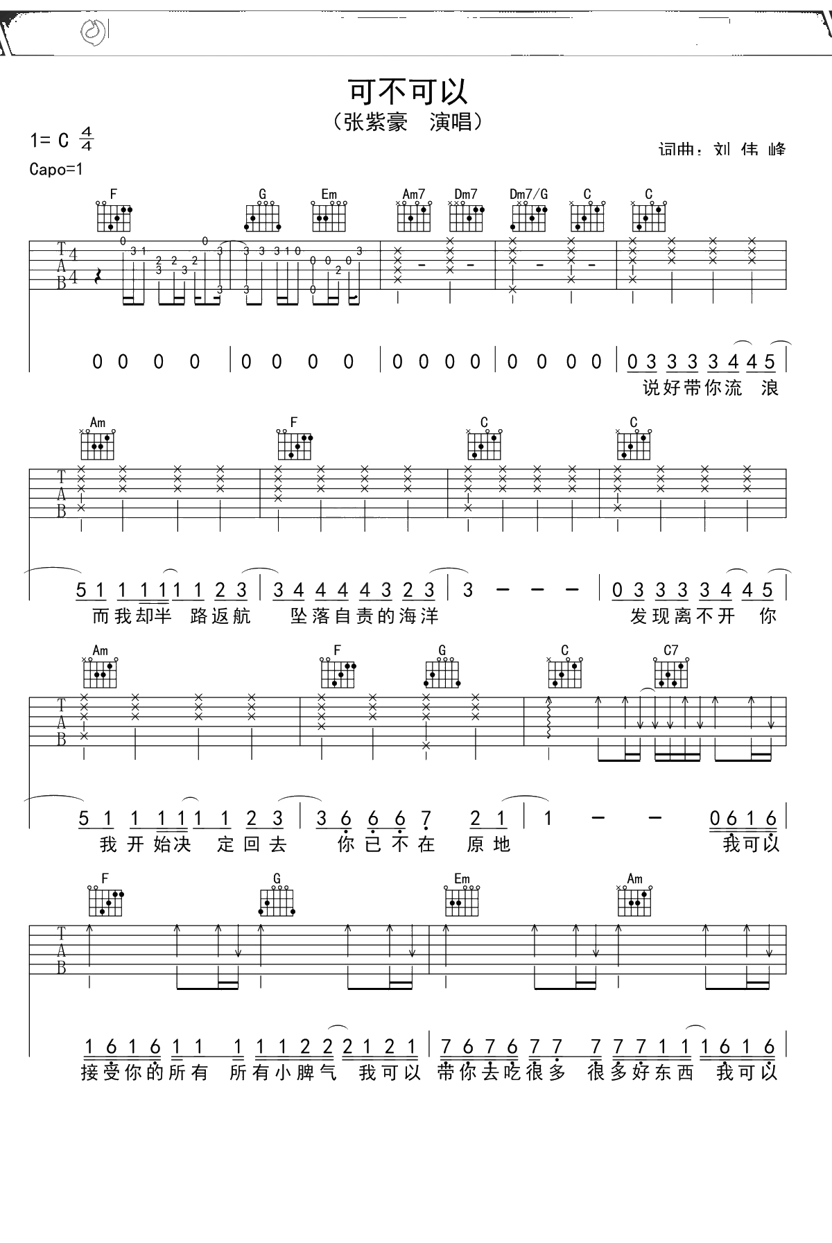 张紫豪《可不可以》吉他谱 C调弹唱六线谱吉他谱