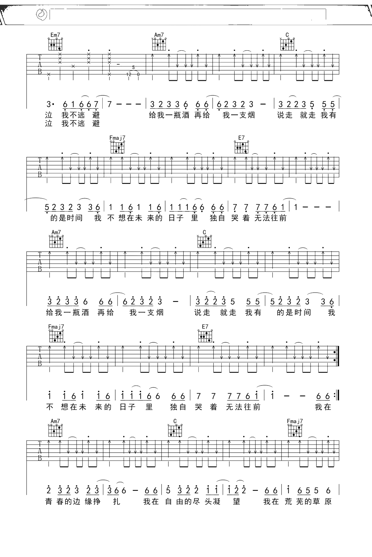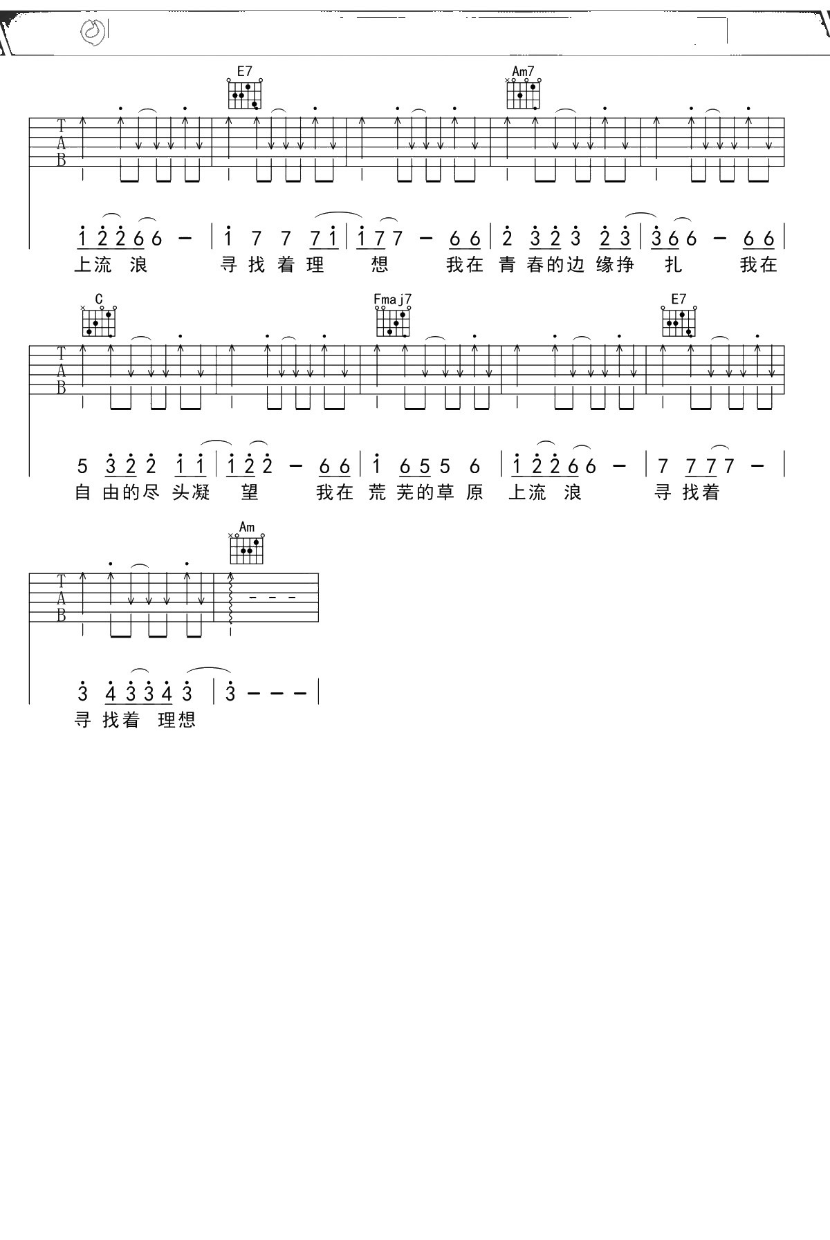 老王乐队《我还年轻》吉他谱 C调弹唱六线谱