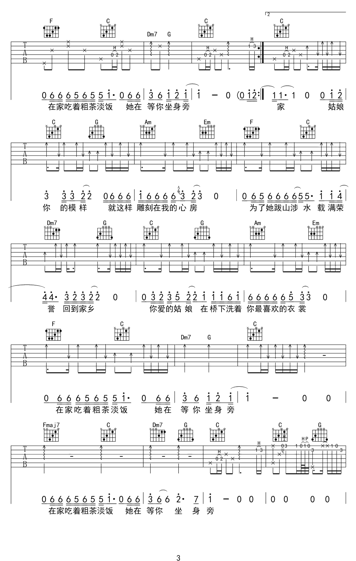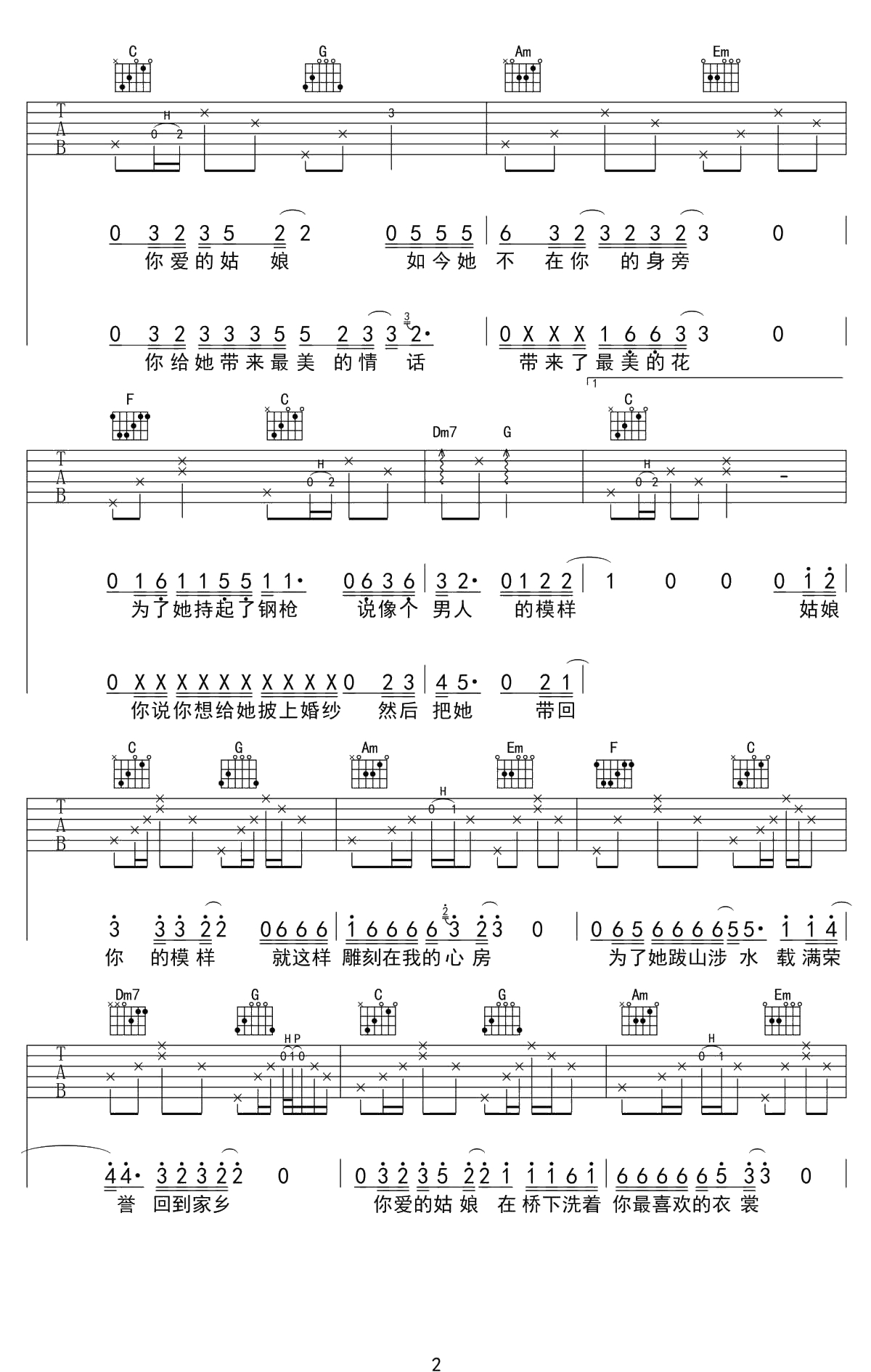 隔壁老樊《你的姑娘》吉他谱 C调弹唱六线谱吉他谱