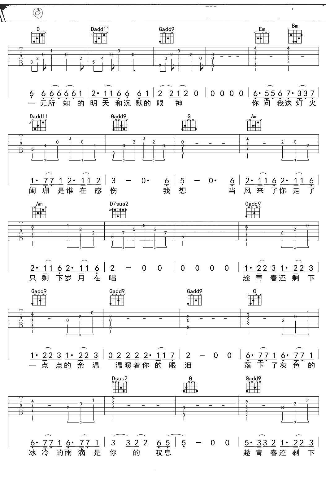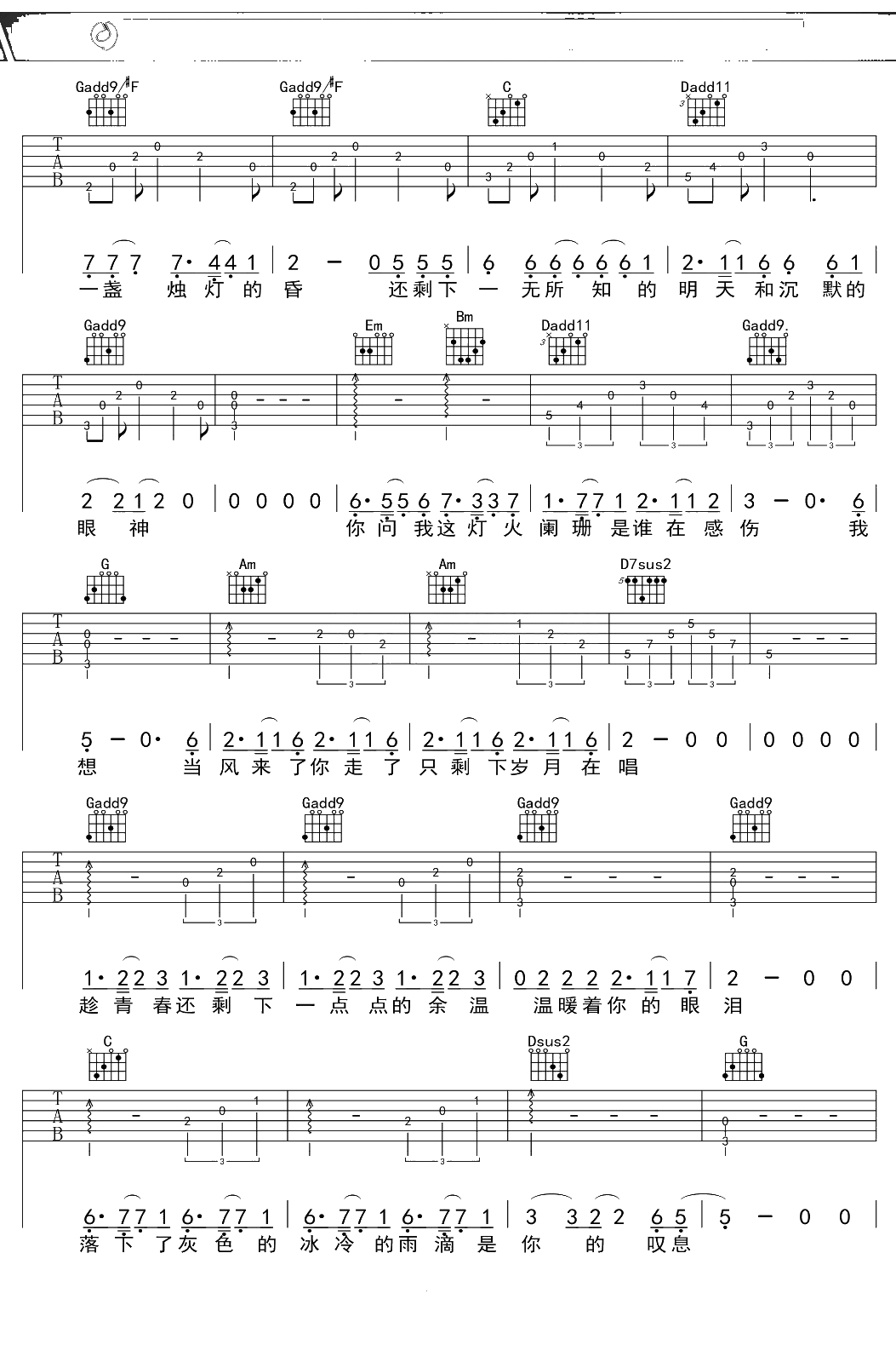 罗大佑《你的样子》吉他谱 G调弹唱六线谱