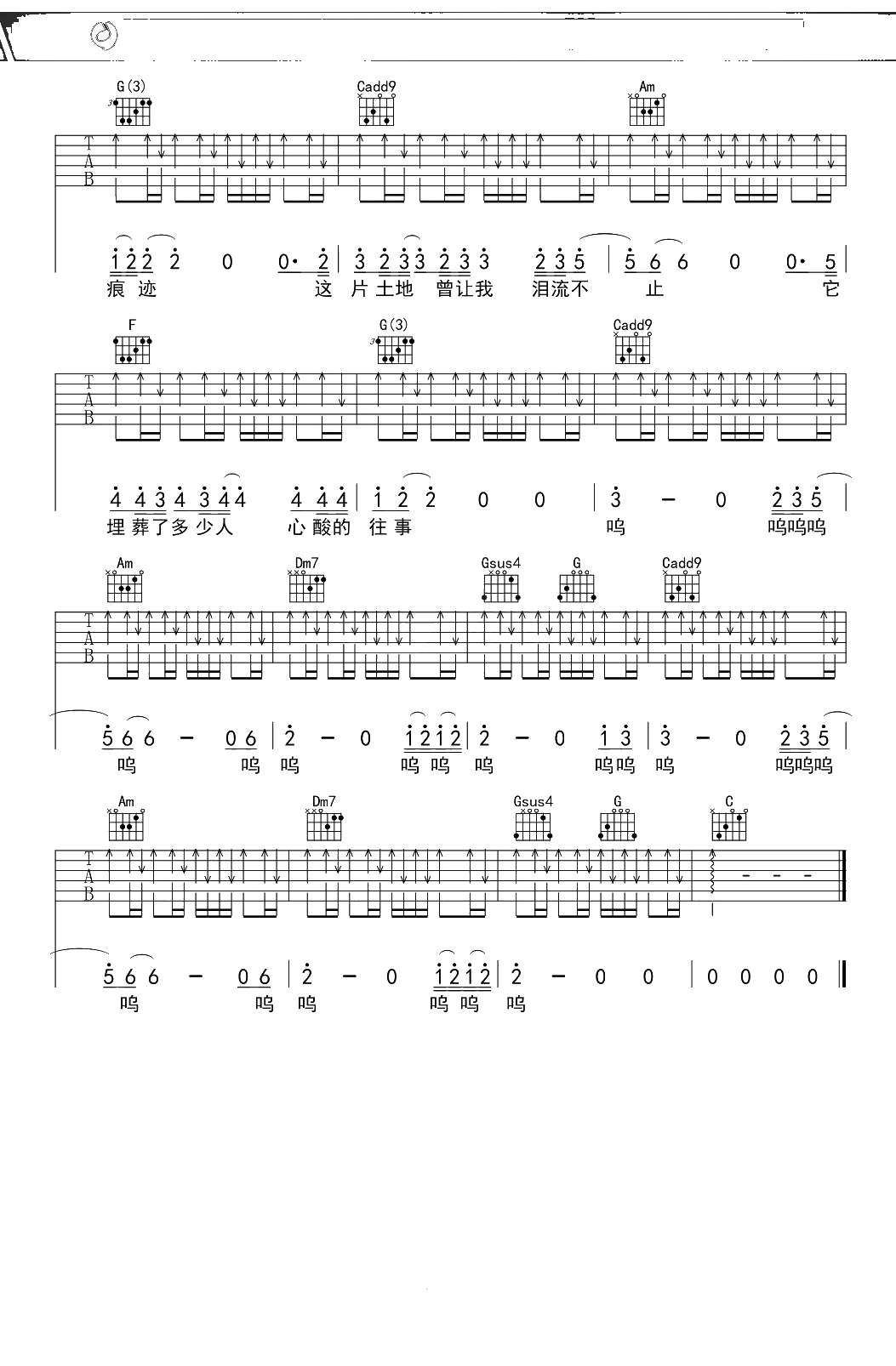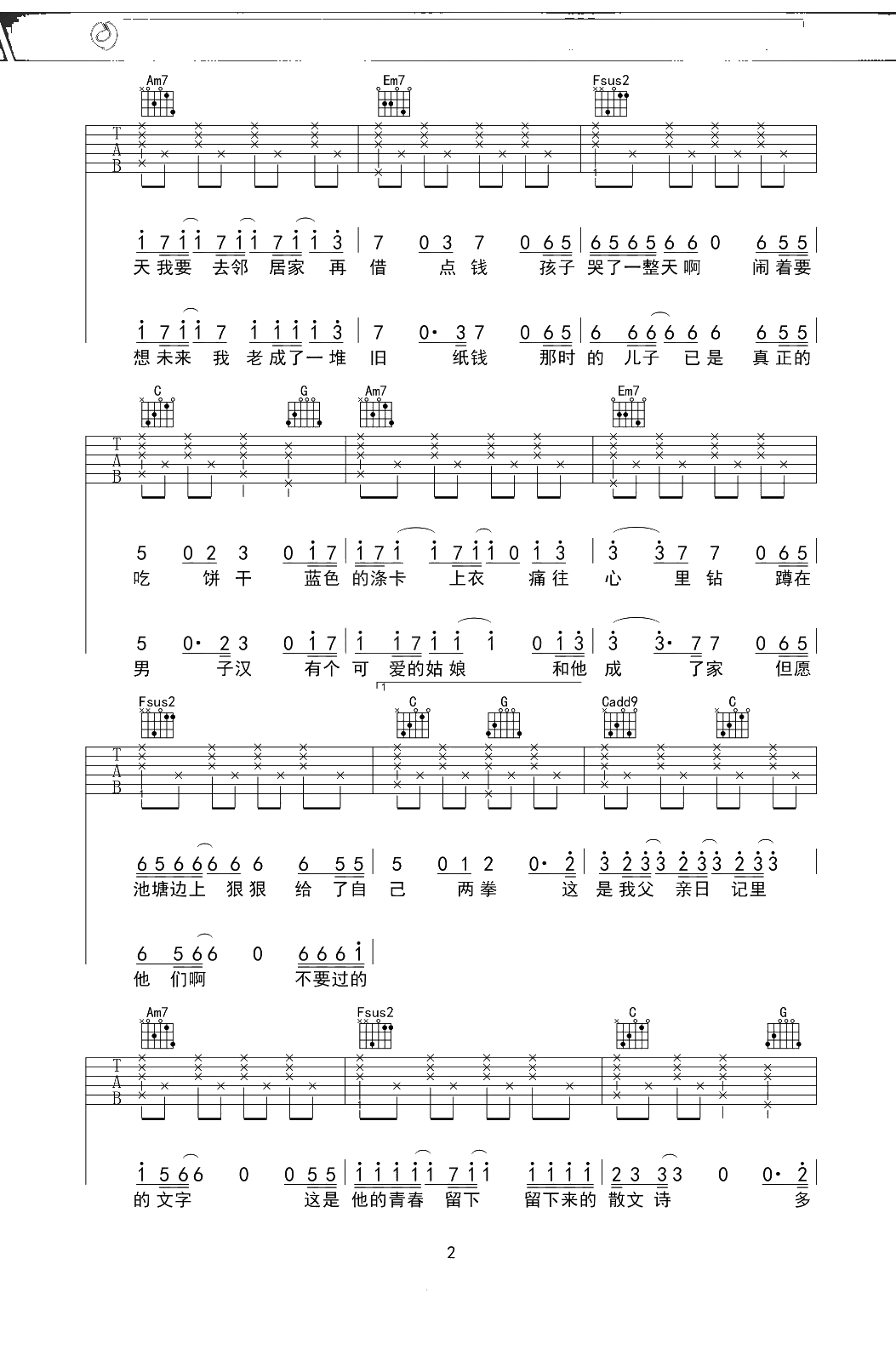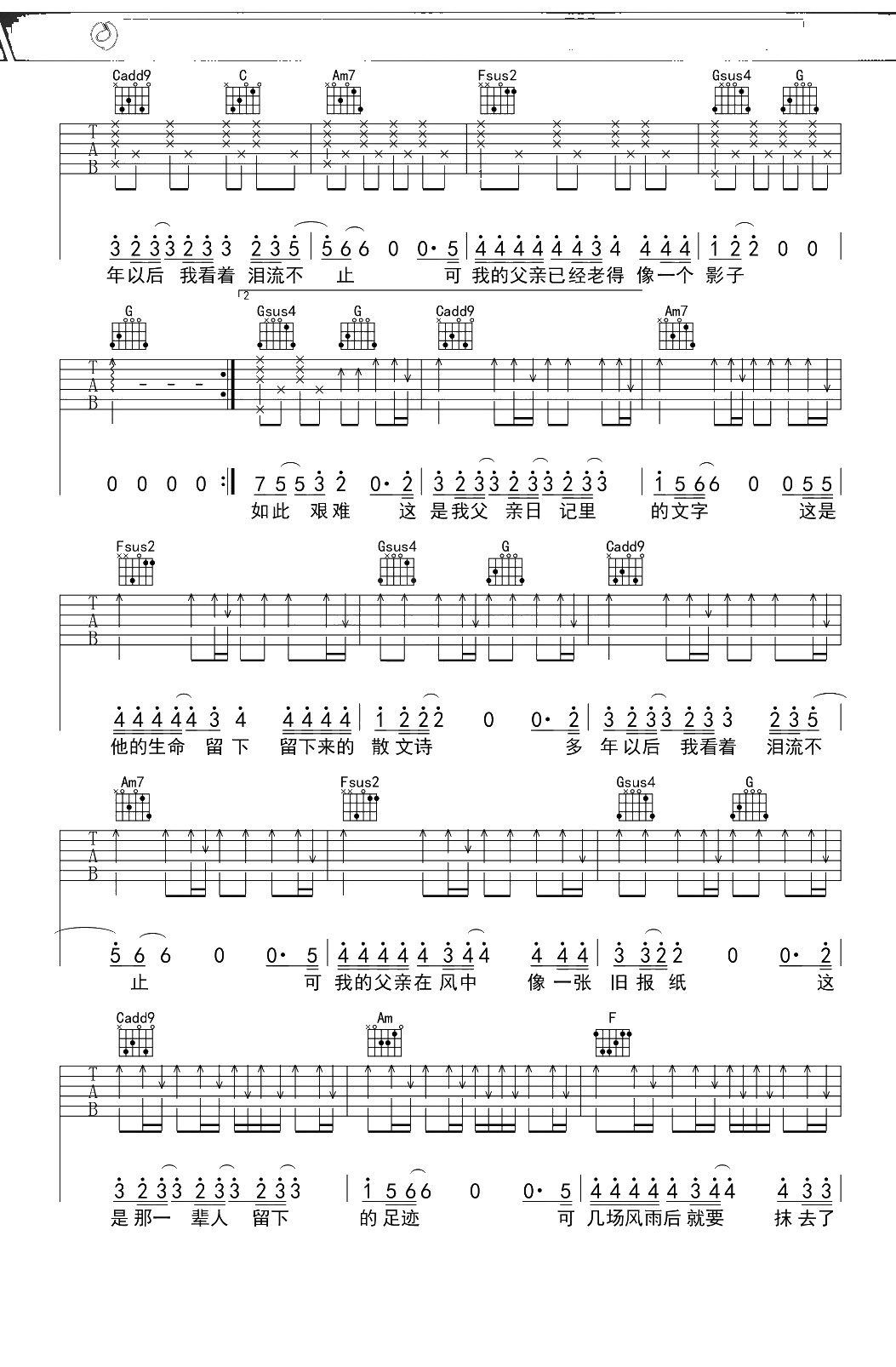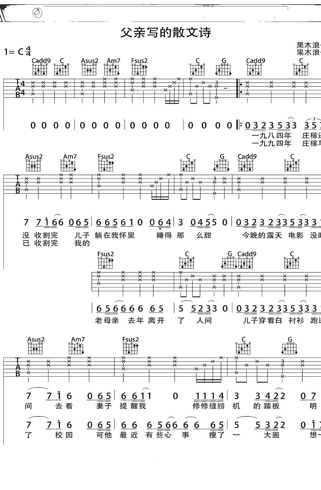 许飞《父亲写的散文诗》吉他谱 C调弹唱六线谱吉他谱