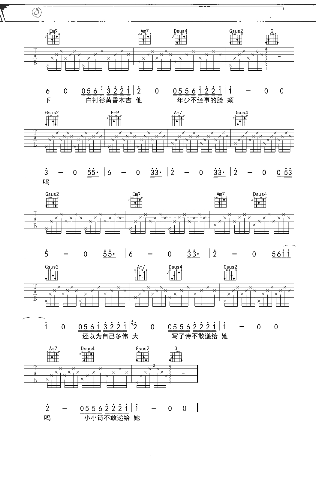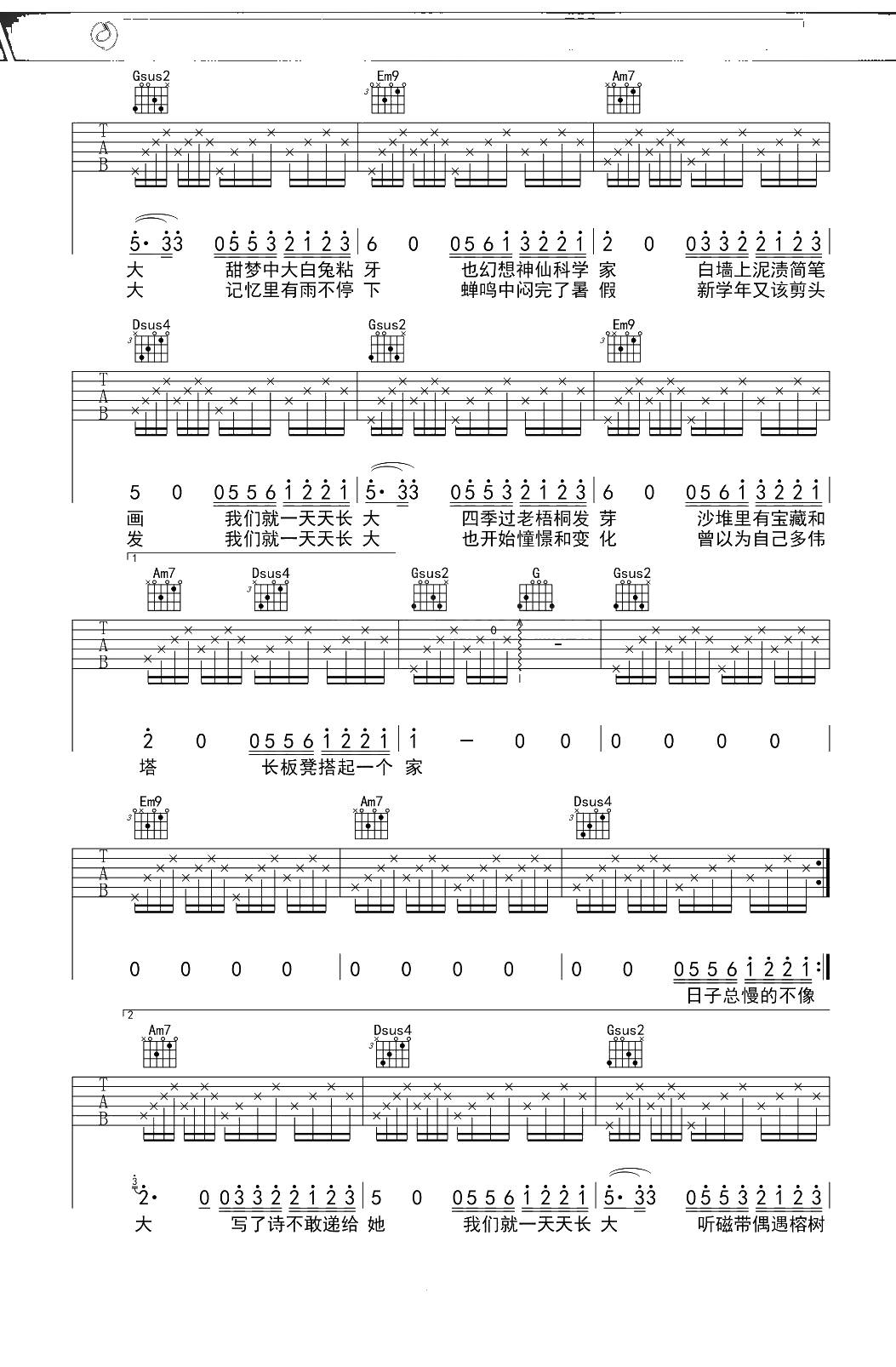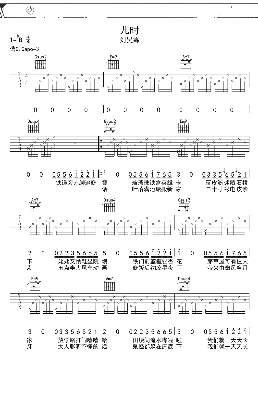刘昊霖《儿时》吉他谱 G调弹唱六线谱吉他谱