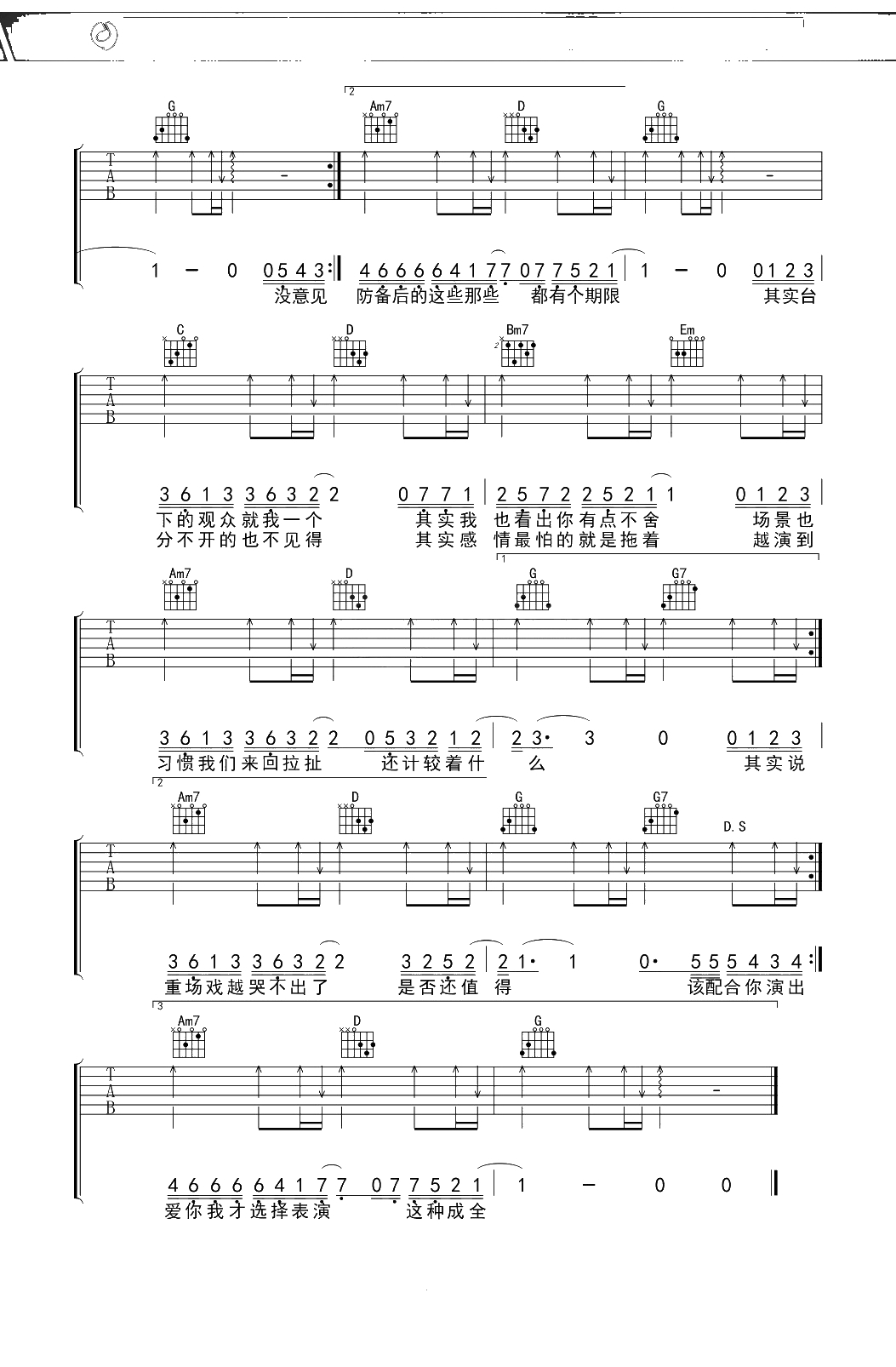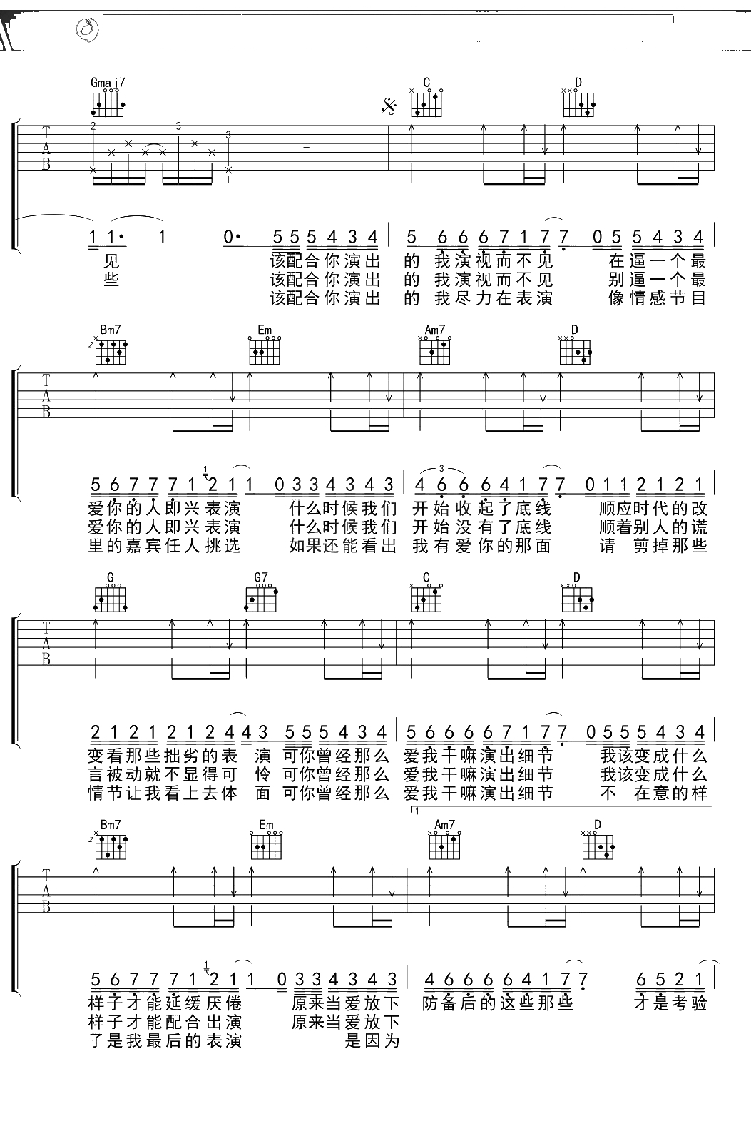 薛之谦《演员》吉他谱 B调弹唱六线谱吉他谱