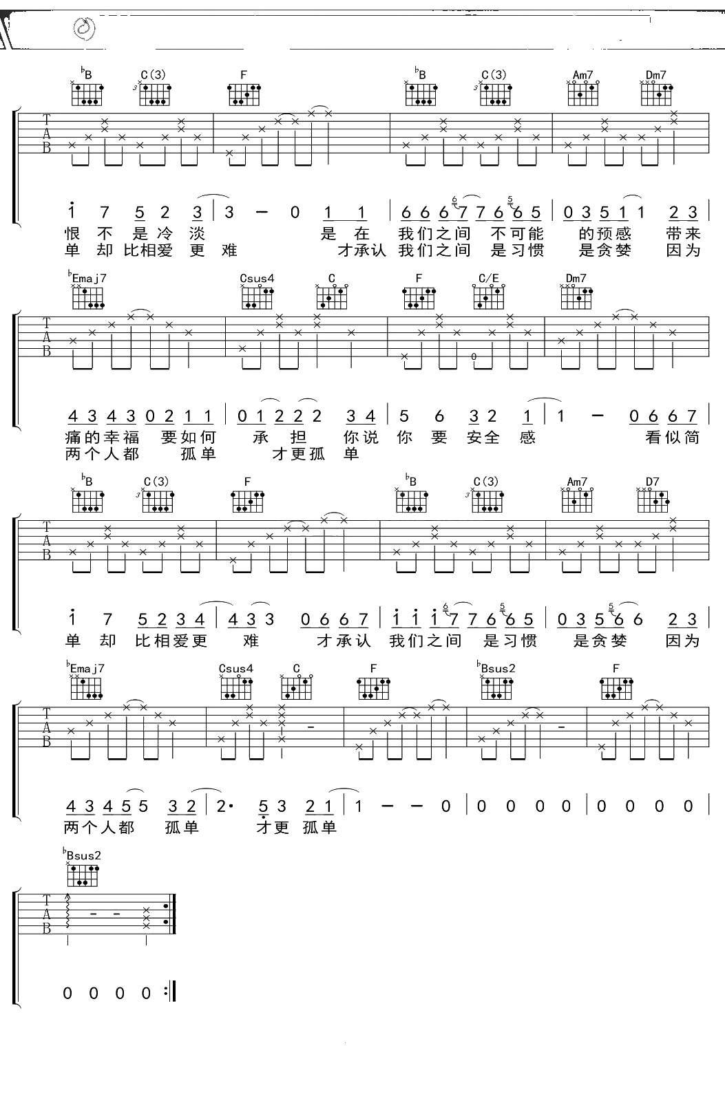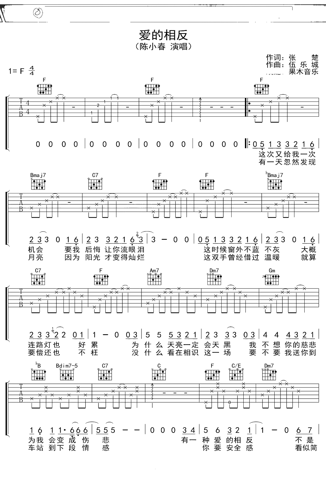 陈小春《爱的相反》吉他谱 F调弹唱六线谱