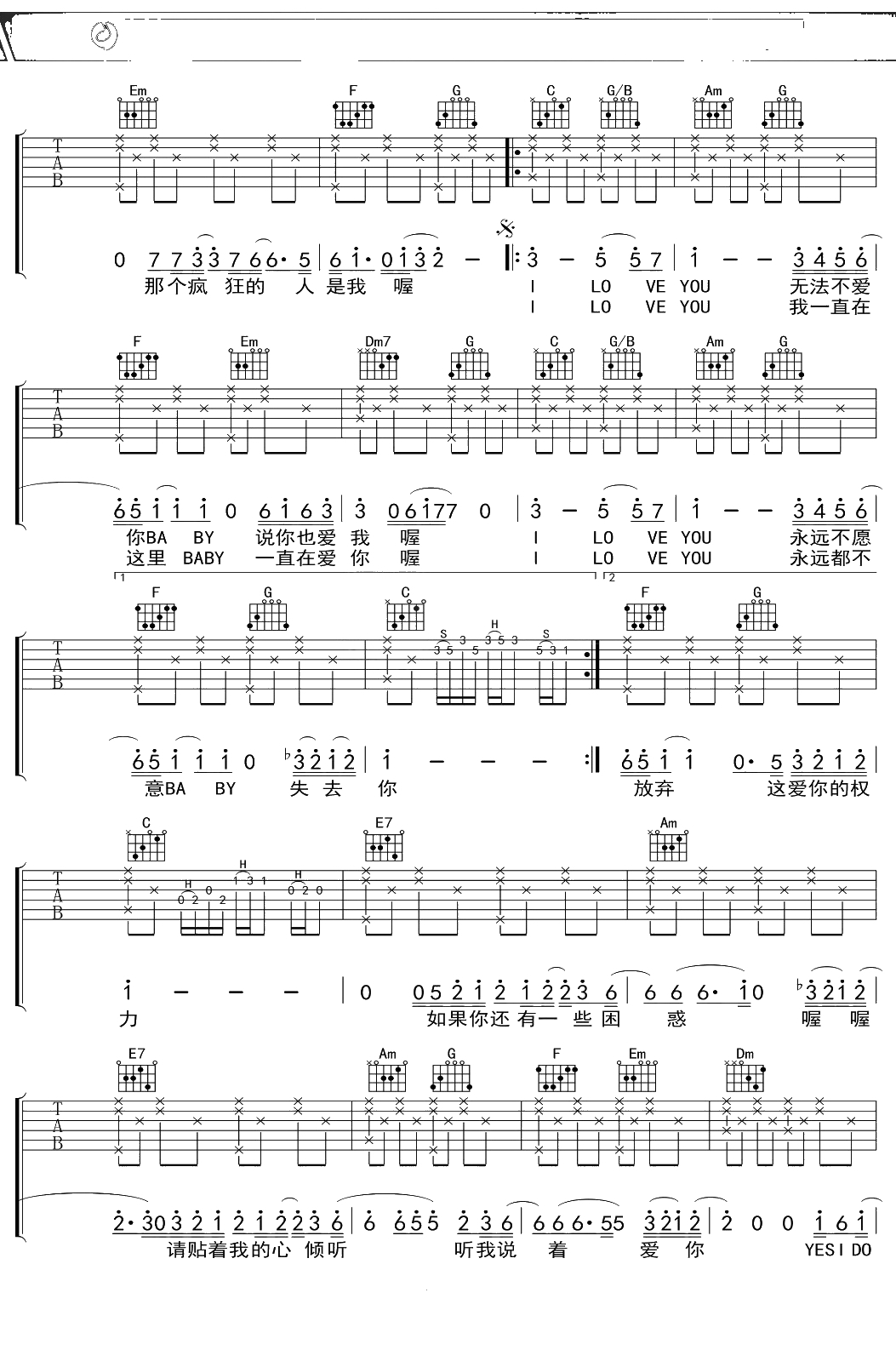 情人吉他谱