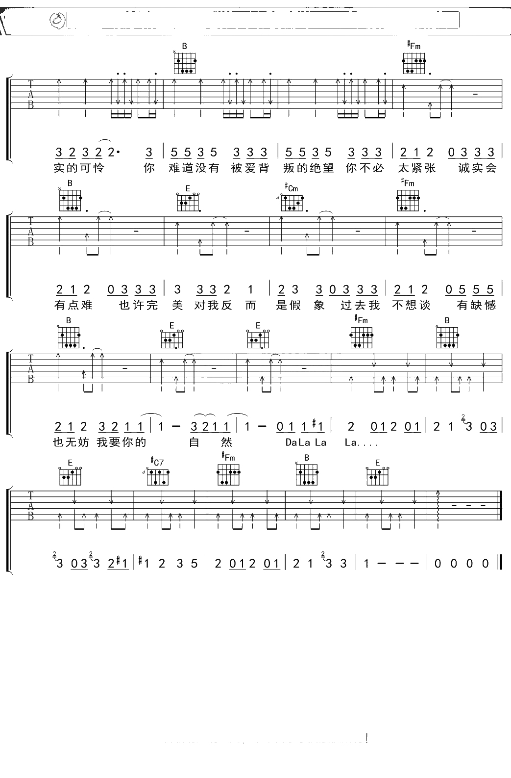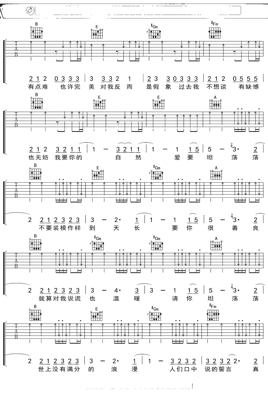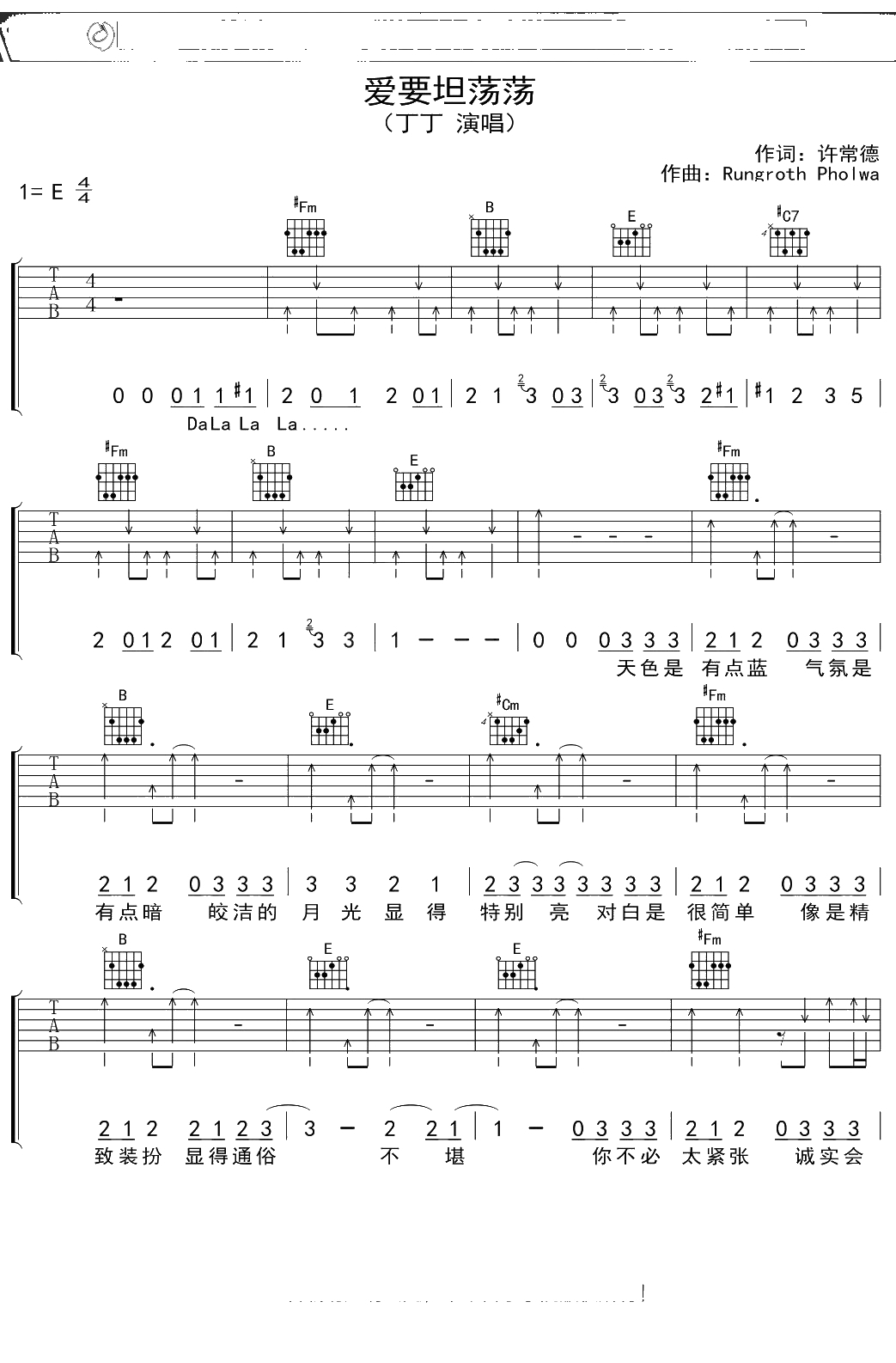 丁丁《爱要坦荡荡》吉他谱 E调弹唱六线谱吉他谱