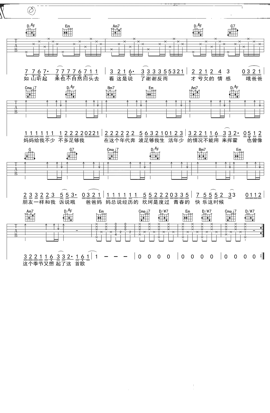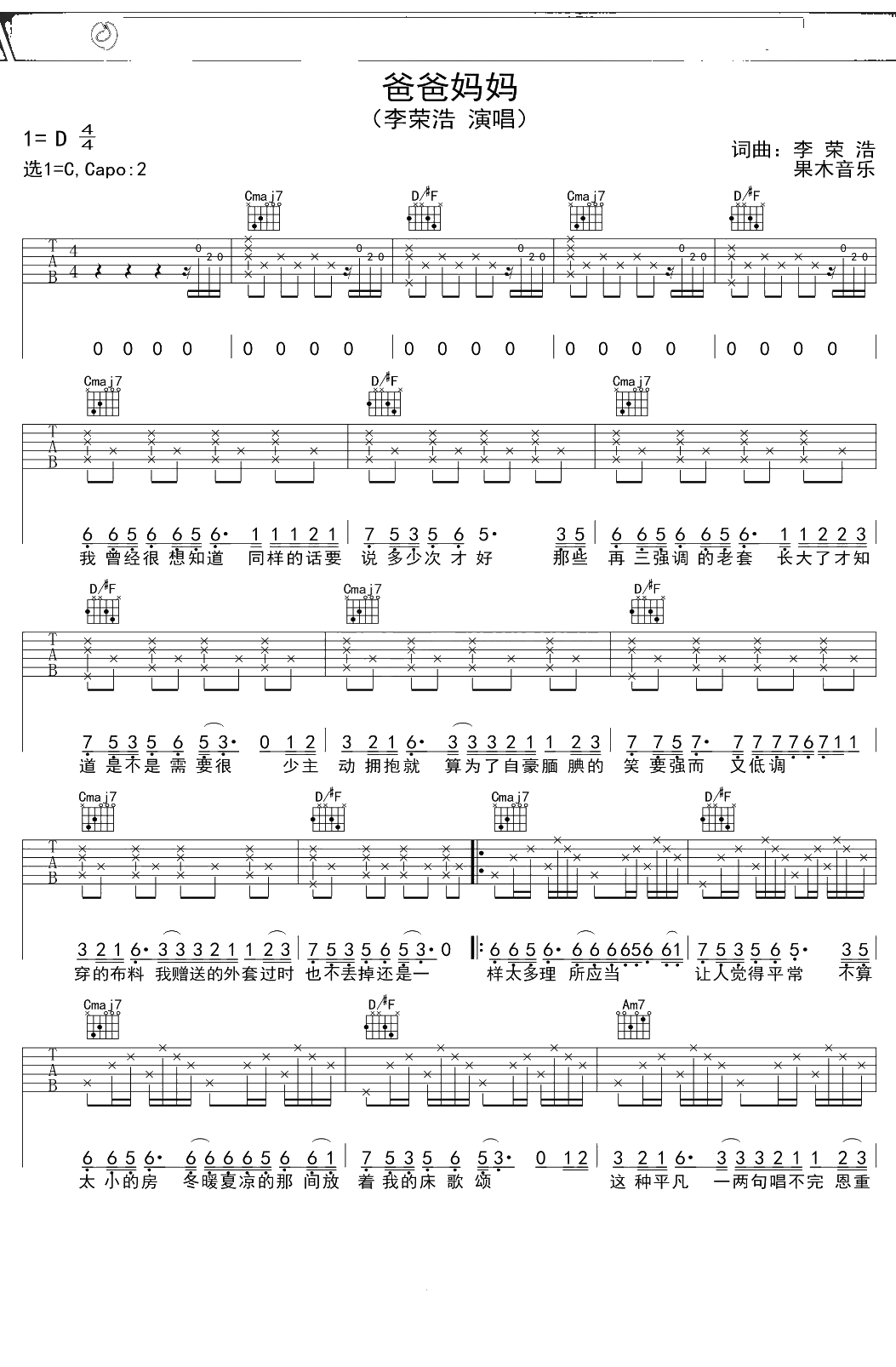 李荣浩《爸爸妈妈》吉他谱 C调吉他弹唱曲谱吉他谱