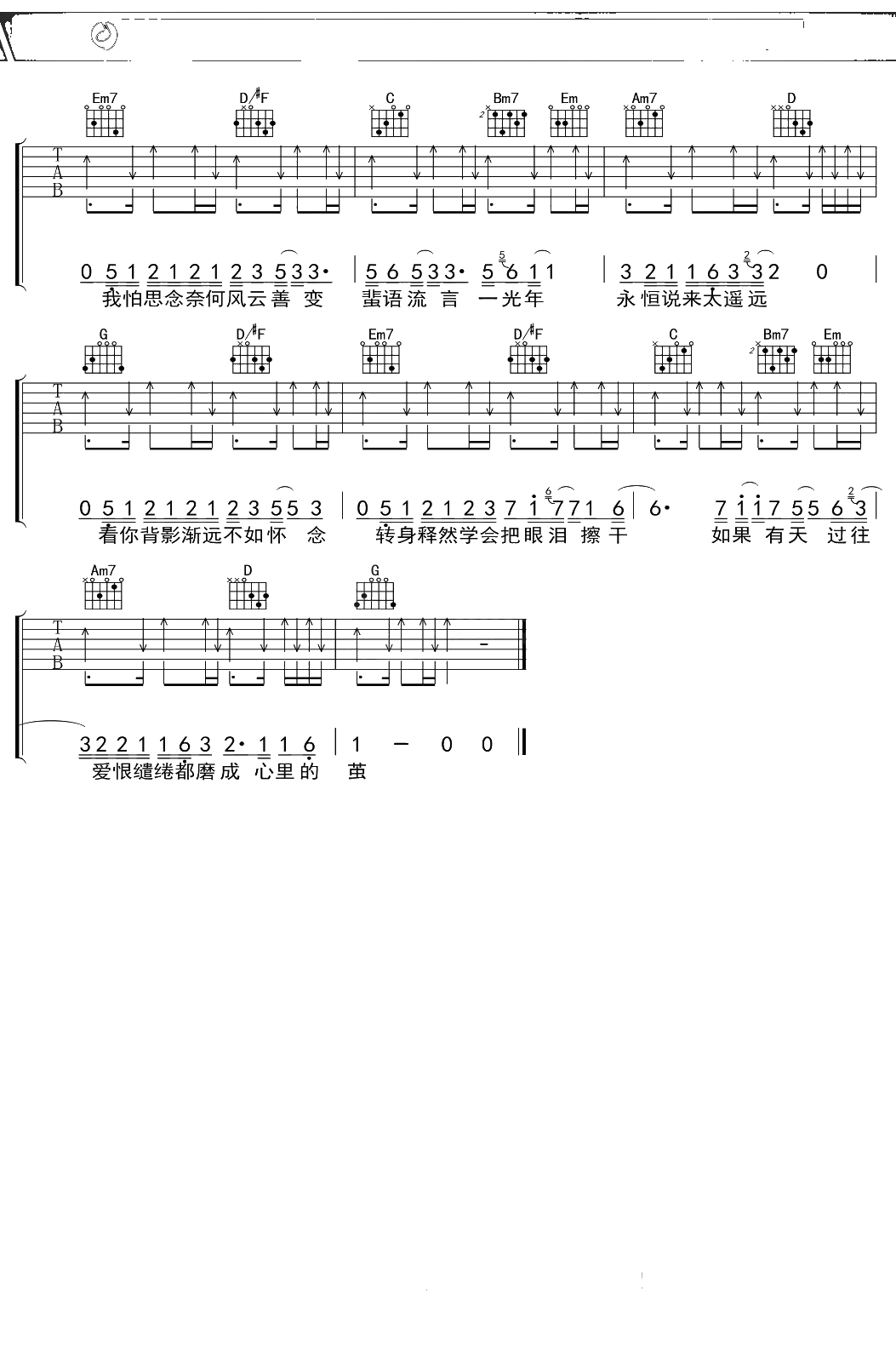 陈楚生《不如怀念》吉他谱 G调弹唱六线谱