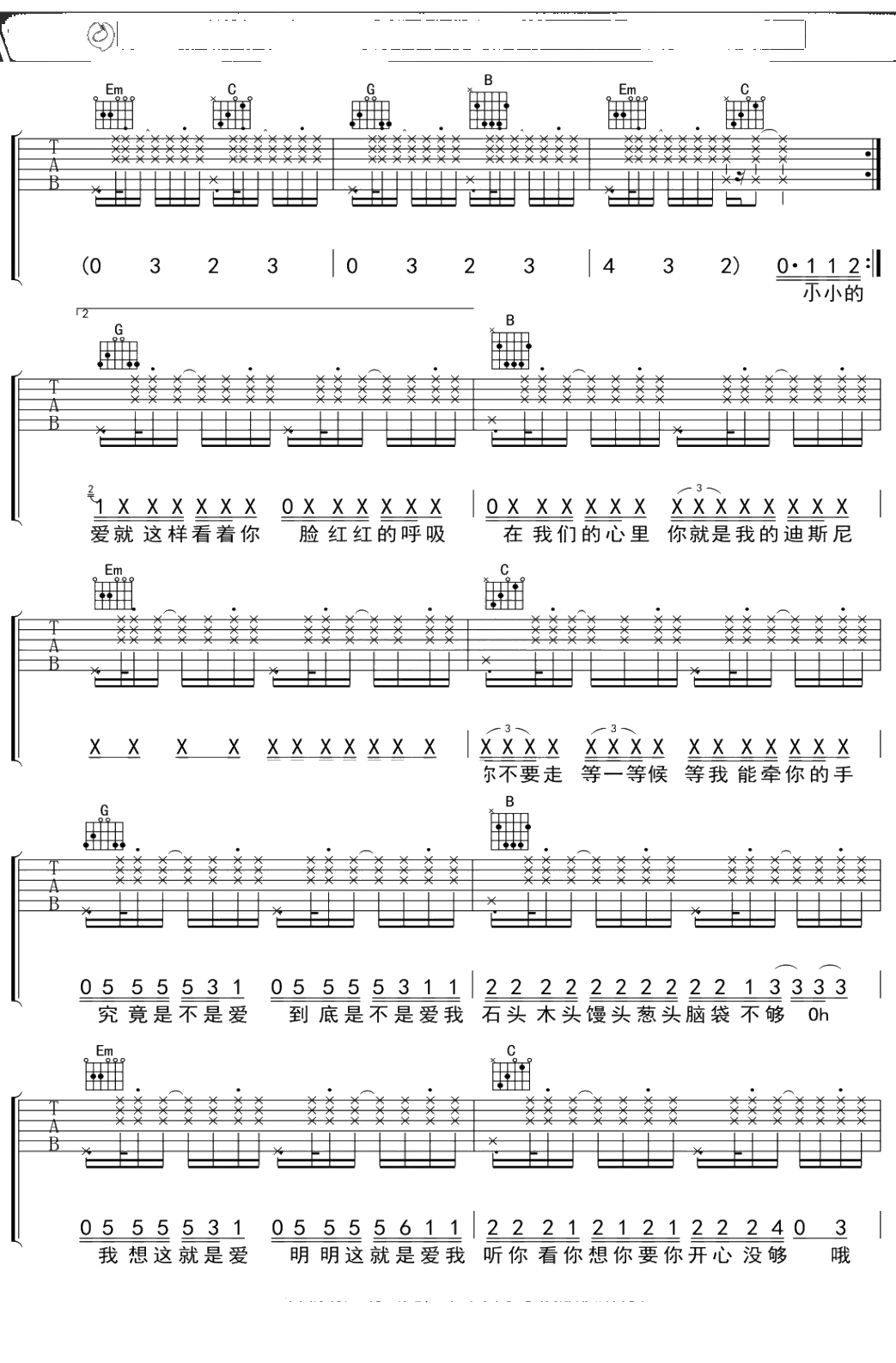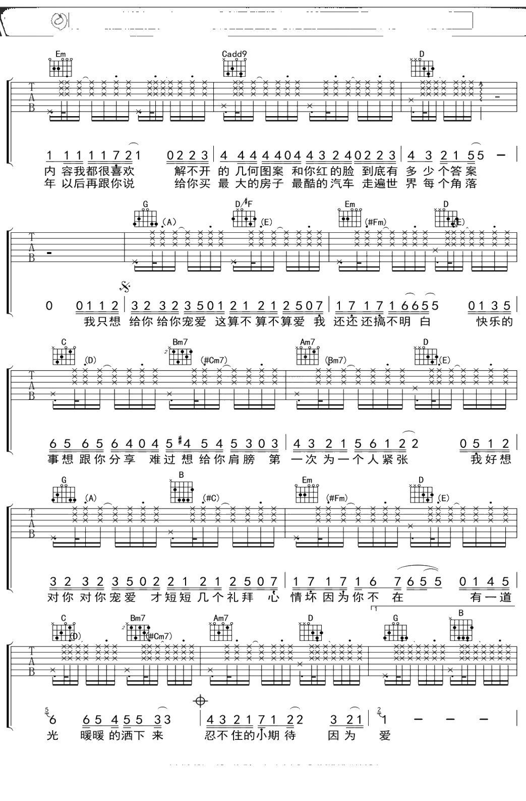 Tfboys《宠爱》吉他谱 G调弹唱六线谱