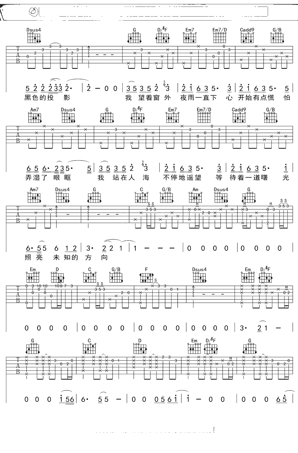 戴佩妮《窗外》吉他谱 G调弹唱六线谱吉他谱